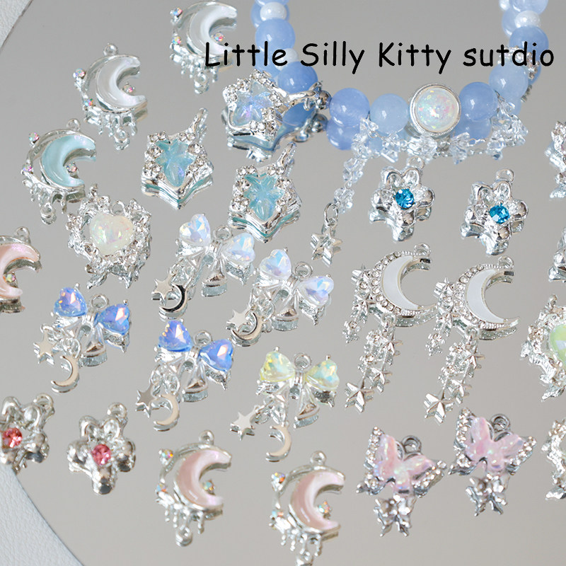 甜酷少女ins金属爱心小花星球吊坠diy串珠手链项链手作饰品材料
