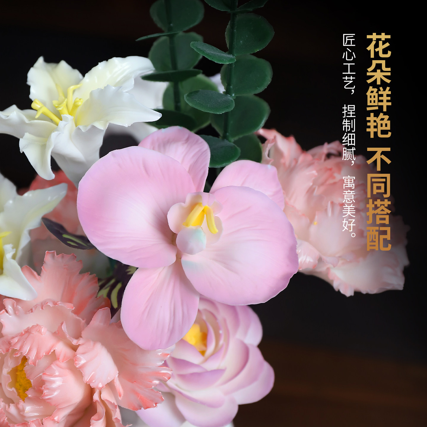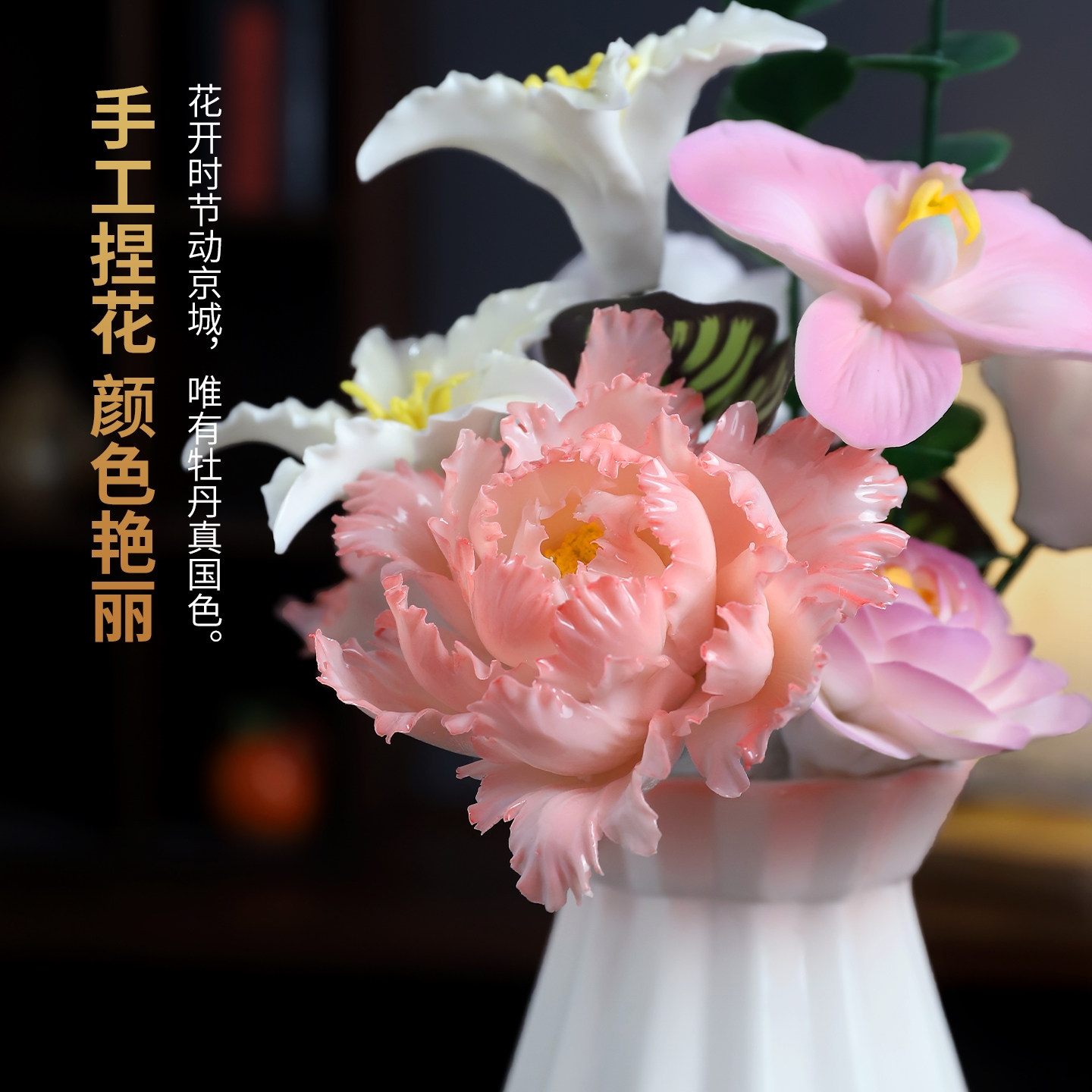 陶瓷手工瓷花仿真花牡丹花荷花莲花花瓶永生花摆件有意义生日礼物