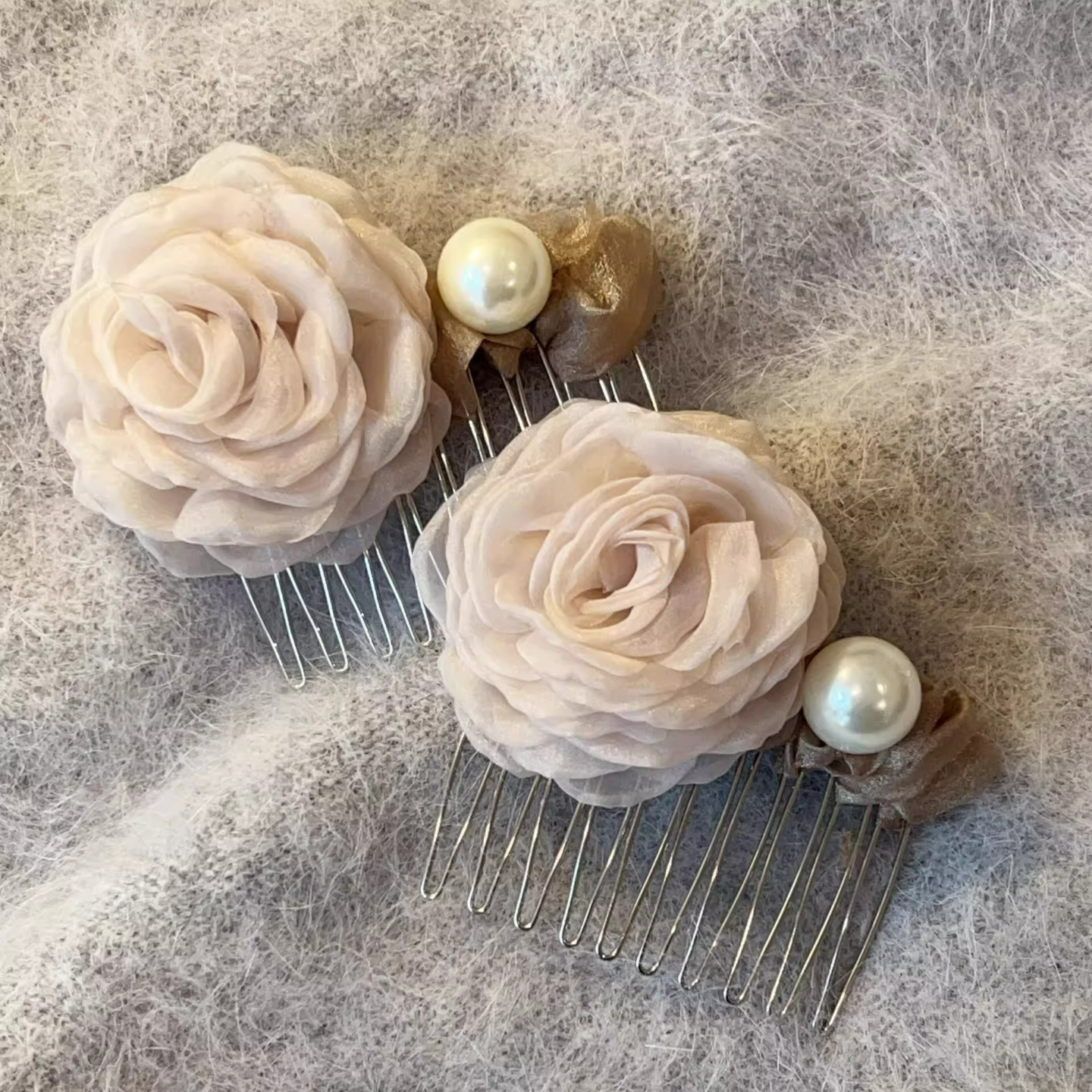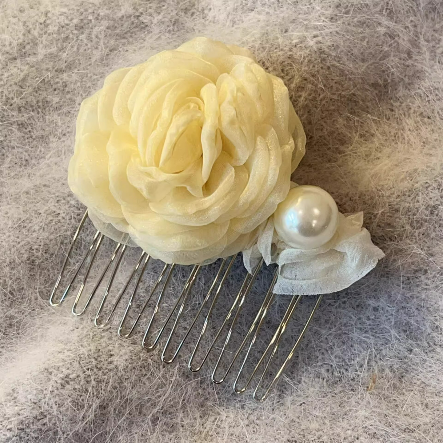 超仙薄纱花朵倒插梳发卡春夏氛围感碎发侧边夹温柔半扎发梳发饰品