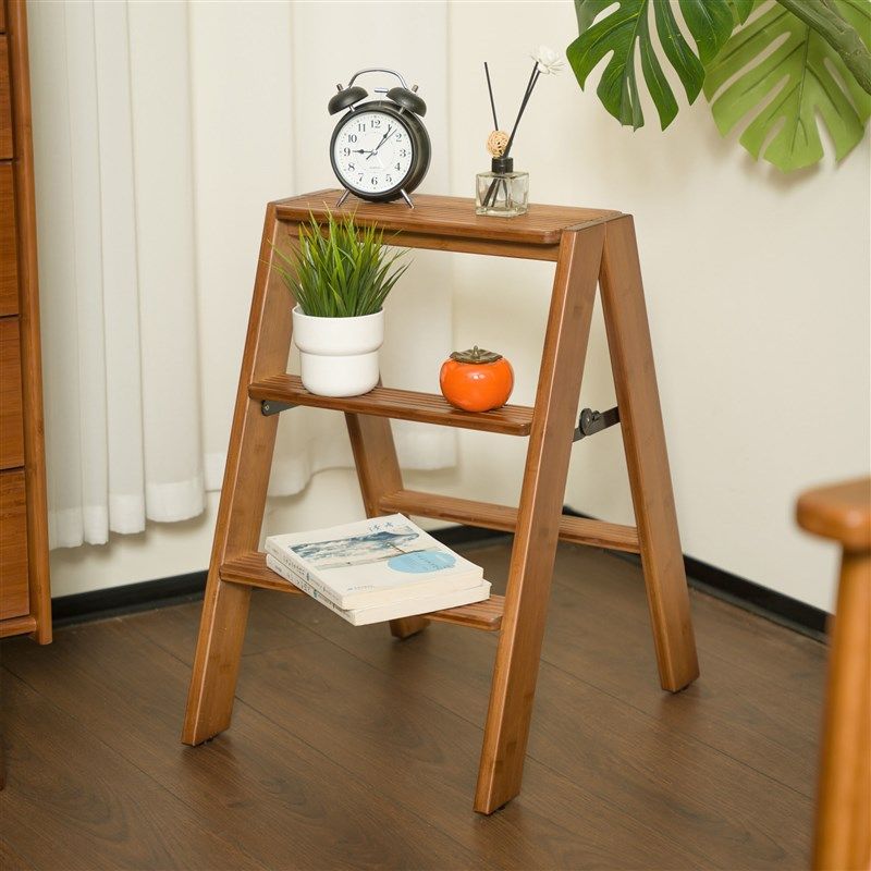 祥福现代家用稳步梯凳台阶加厚餐桌椅两用室内登高楼梯楠竹小梯子