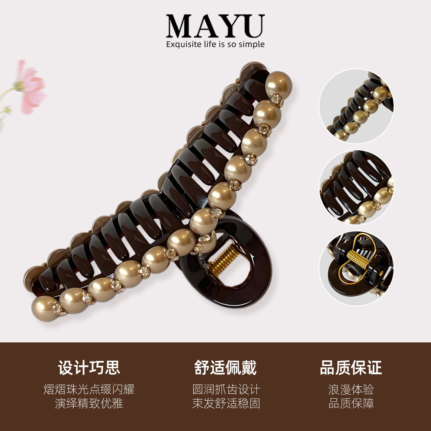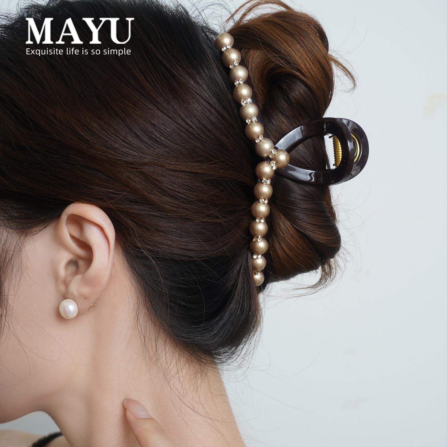 优雅奢华香槟金仿珍珠抓夹女2026新款高端发夹后脑勺鲨鱼夹子头饰