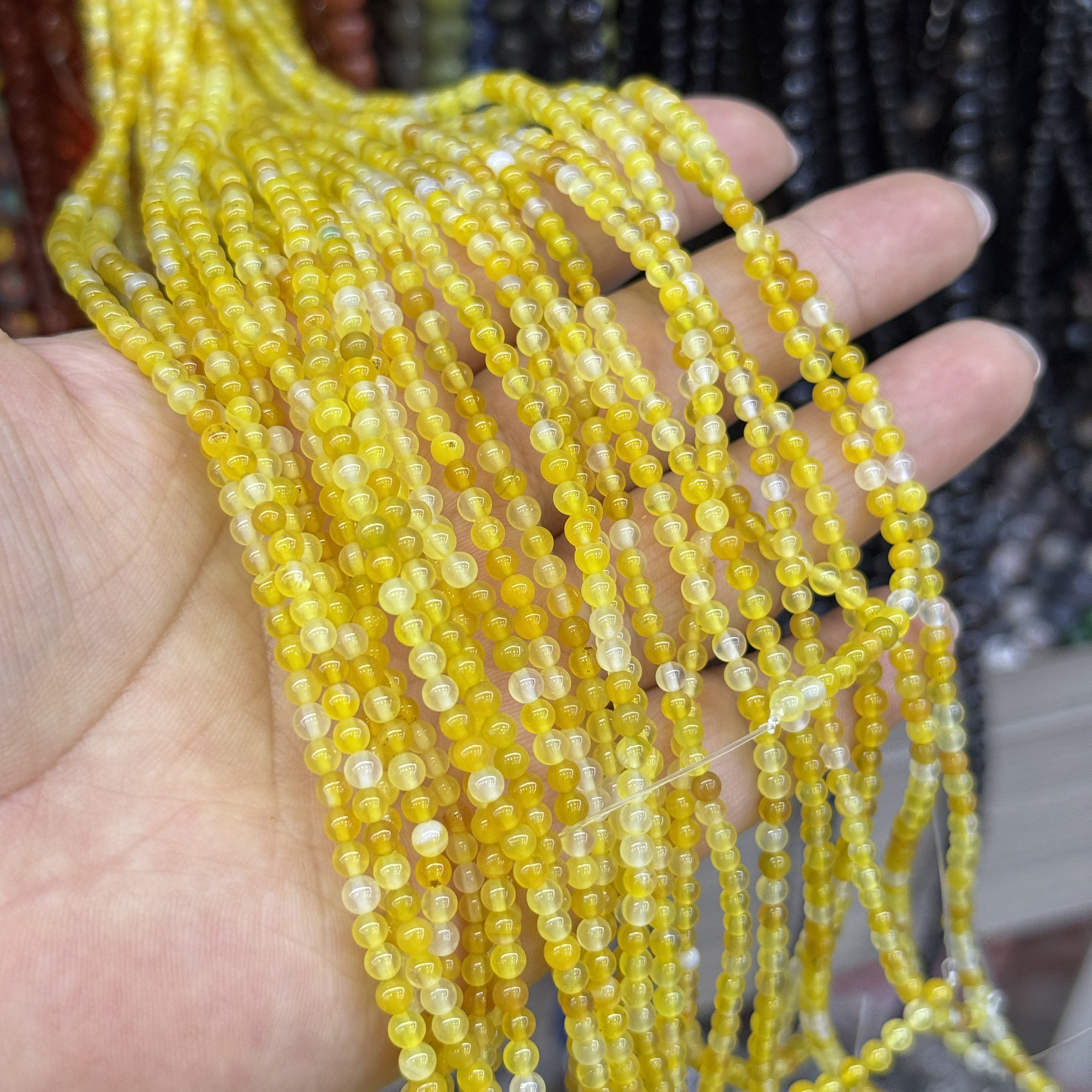 福利款天然3mm黄玛瑙圆珠混彩色系圆珠散珠半成品一条约110颗