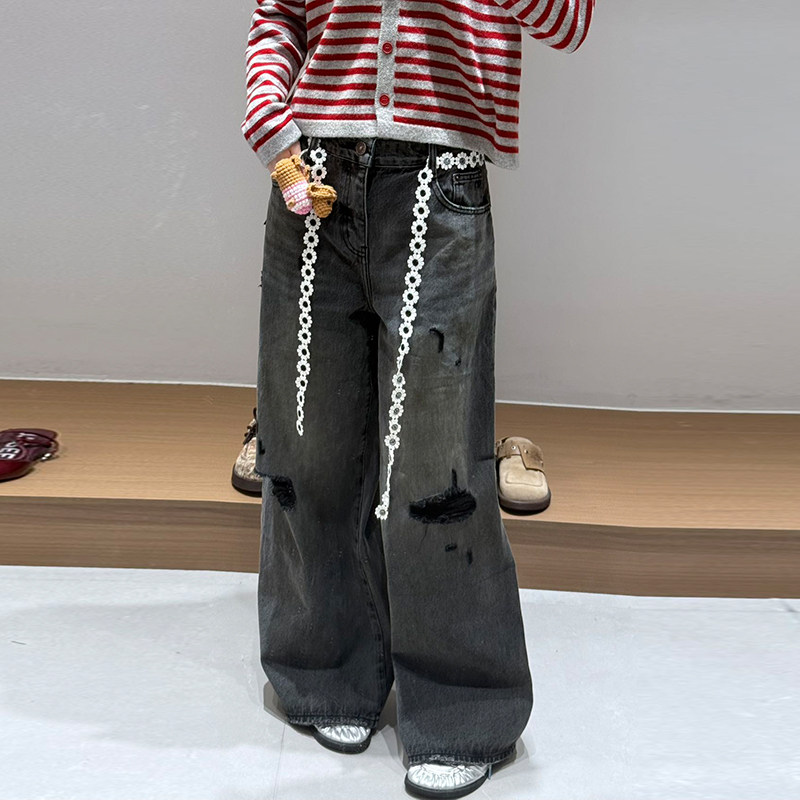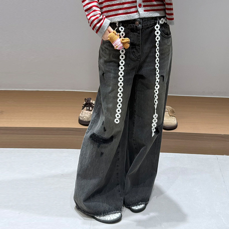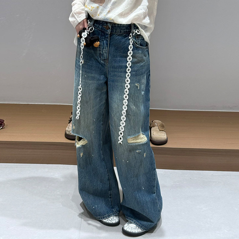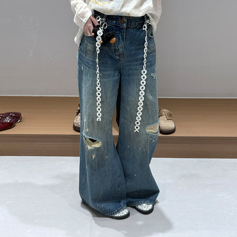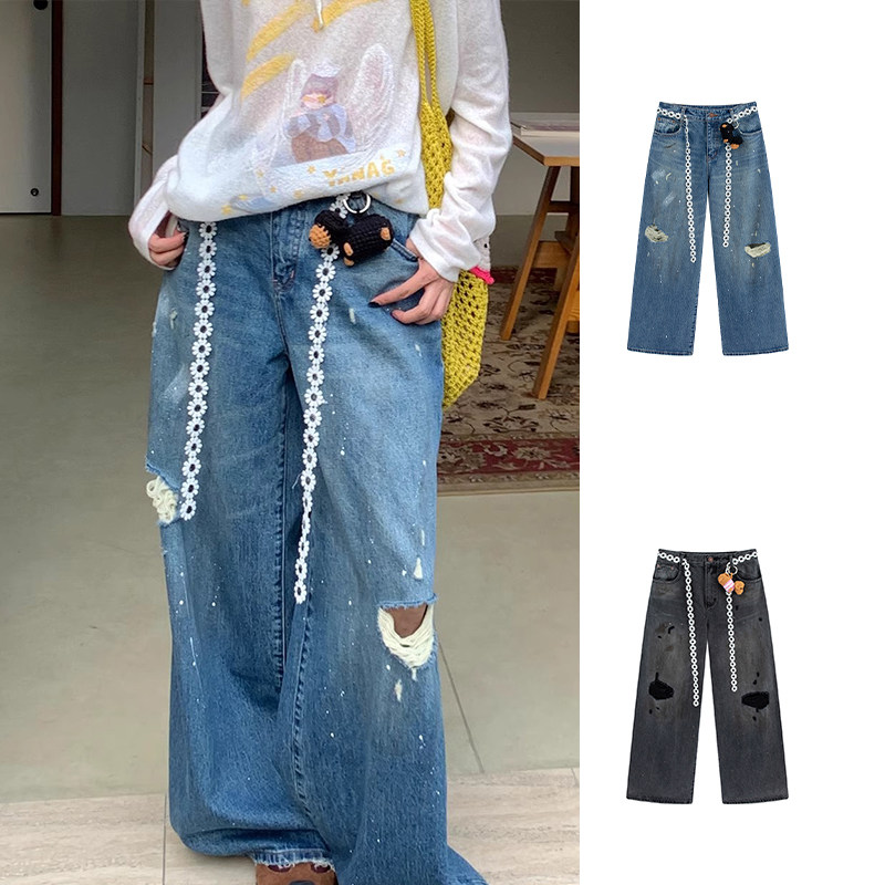 【现货】YANAG原创设计腊肠小狗泼墨脏点牛仔裤纯棉休闲潮流裤子