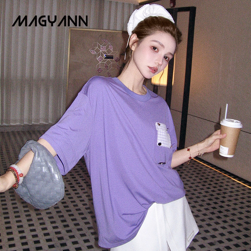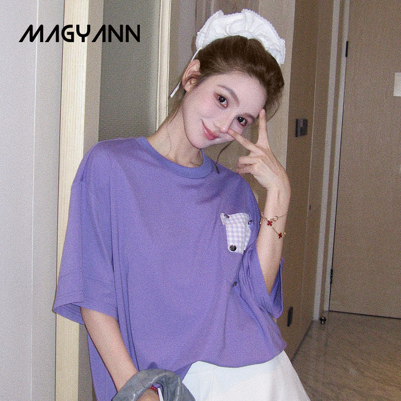 【紫气东来】Magyann设计师原创2026夏圆领休闲宽松格纹贴袋T恤女