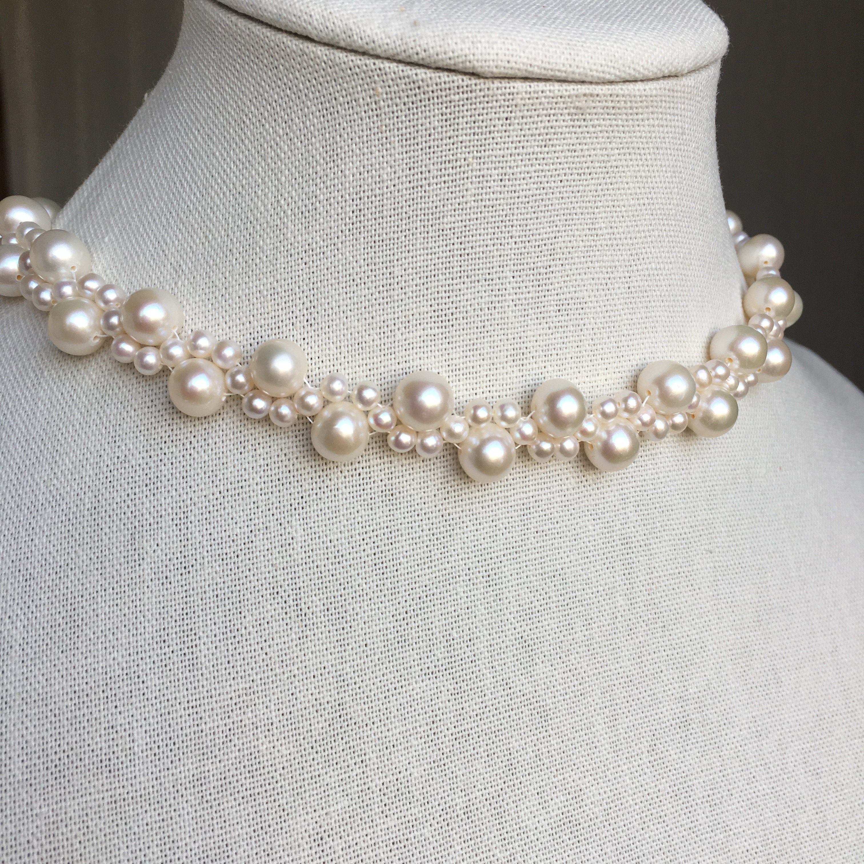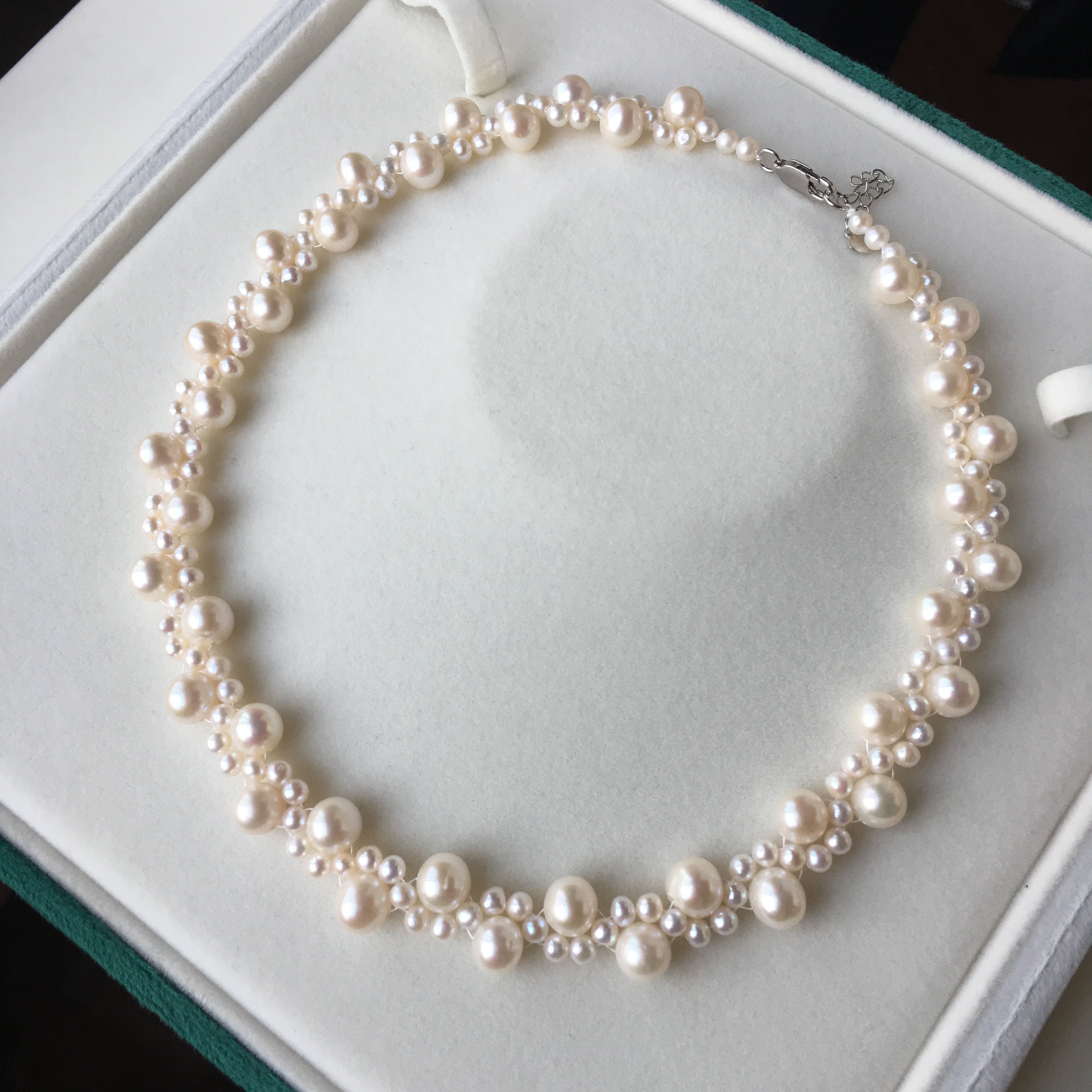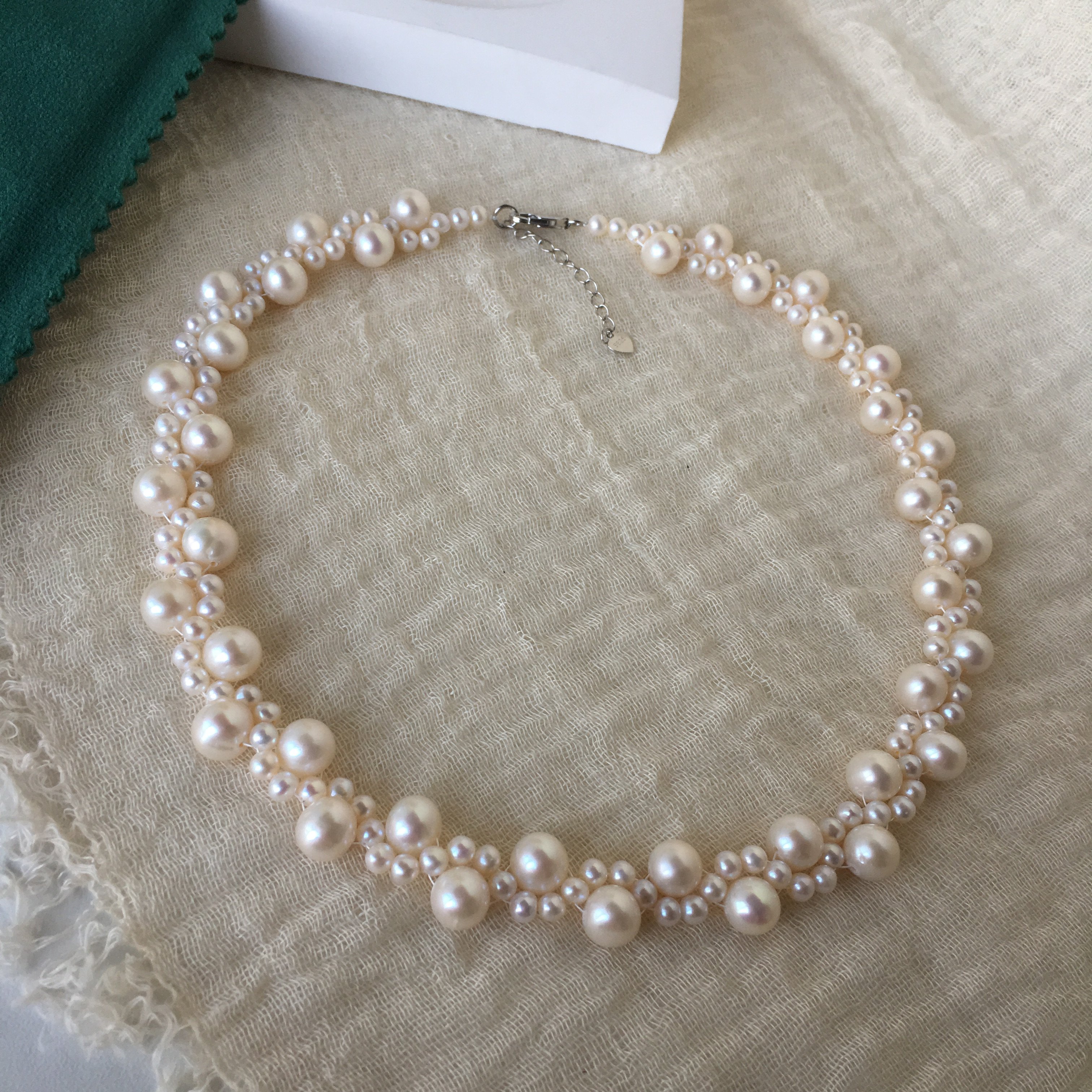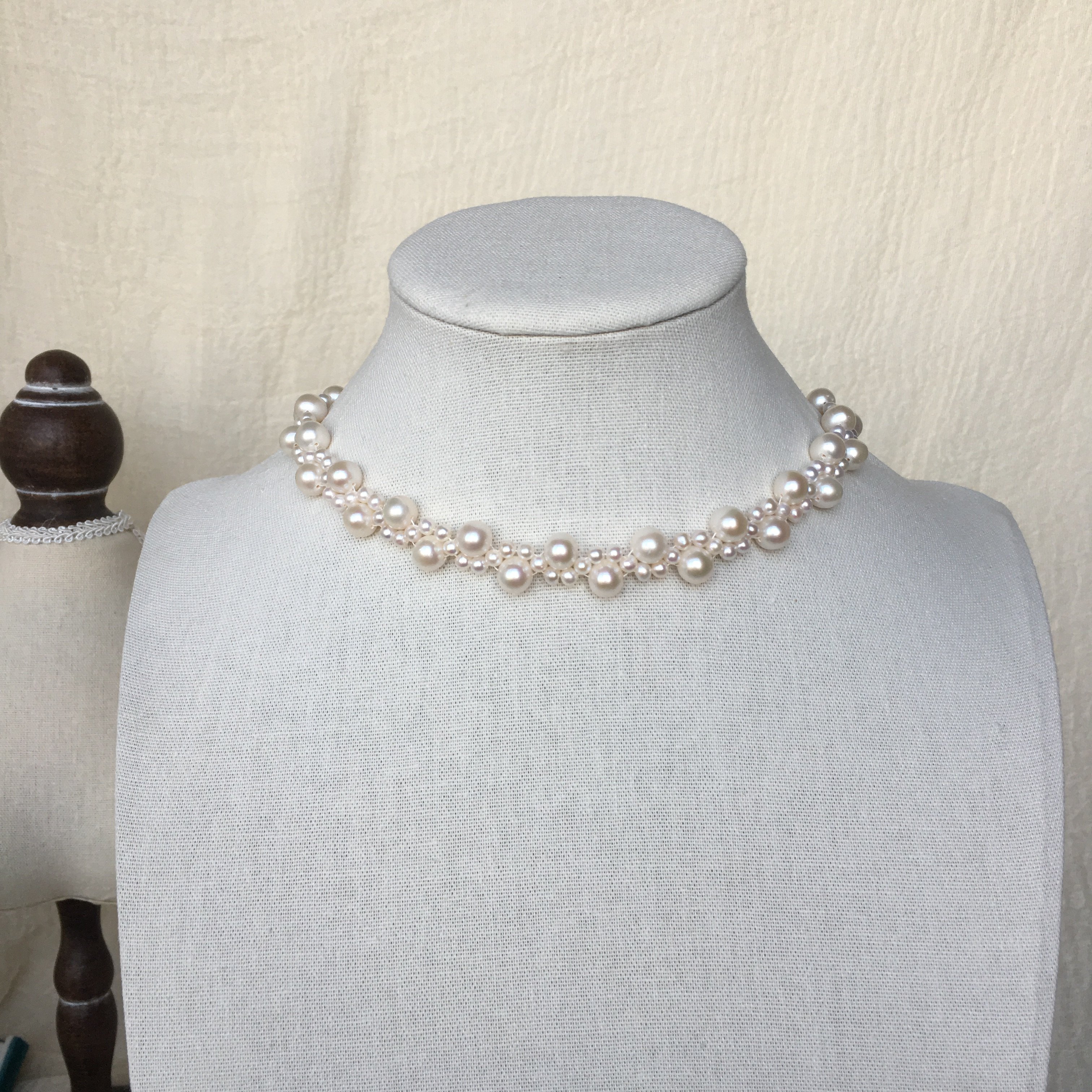 天然淡水珍珠项链女锁骨链手工编织复古多珠颈链蕾丝礼服婚礼配饰