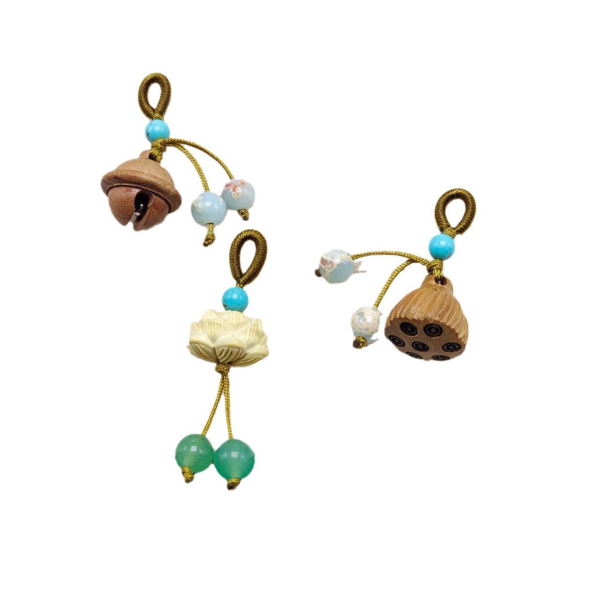 天然原木莲花莲蓬铃铛吊坠挂件diy文玩佛珠手串配饰挂饰配件饰品