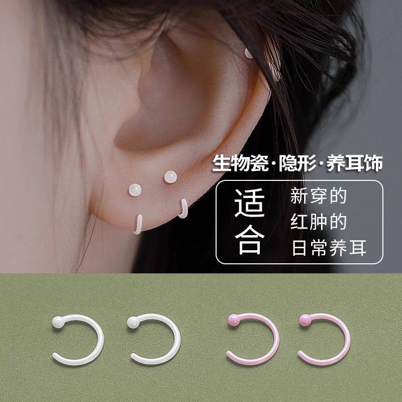 养耳洞生物瓷耳钉女陶瓷小耳环素圈睡觉免摘新款爆款耳骨钉