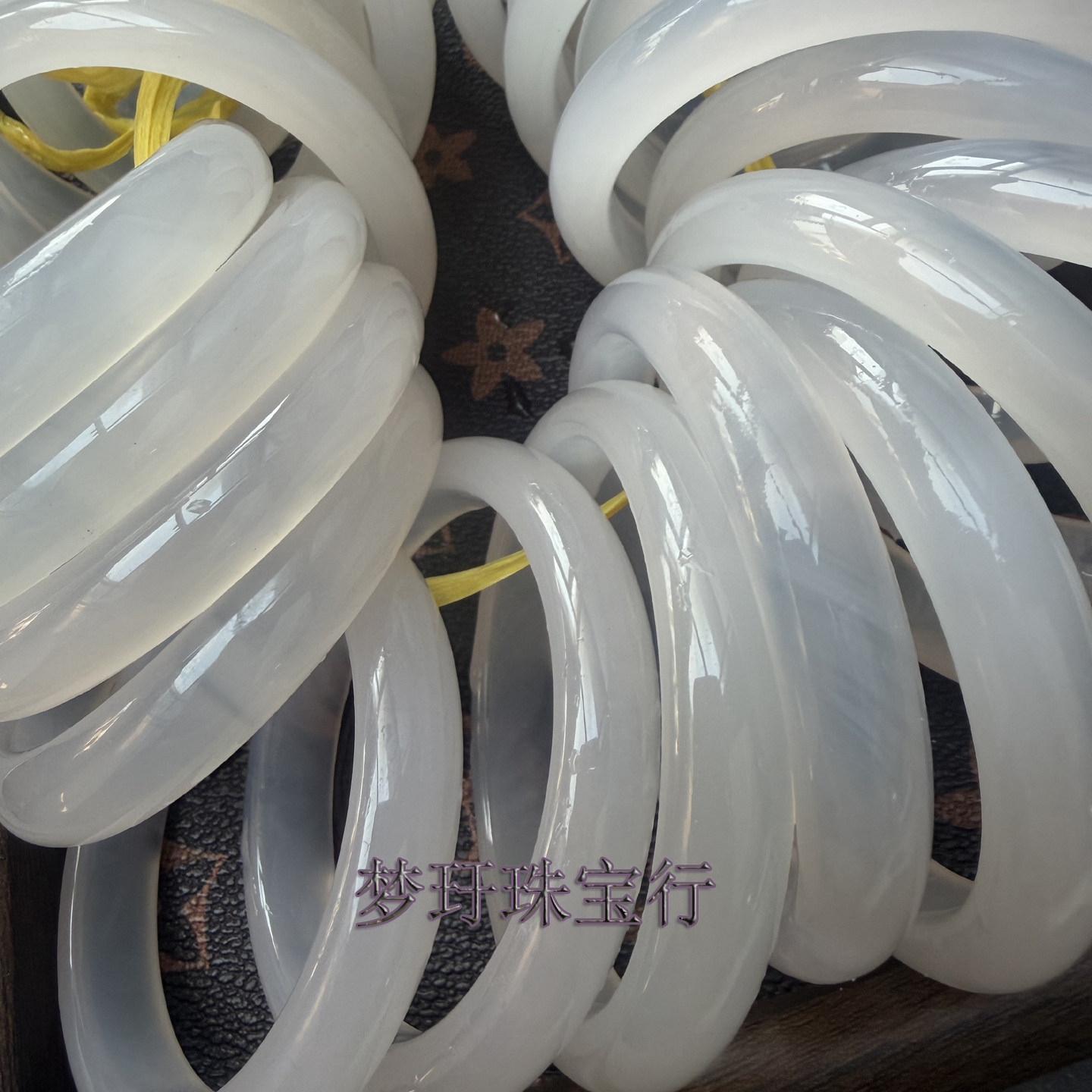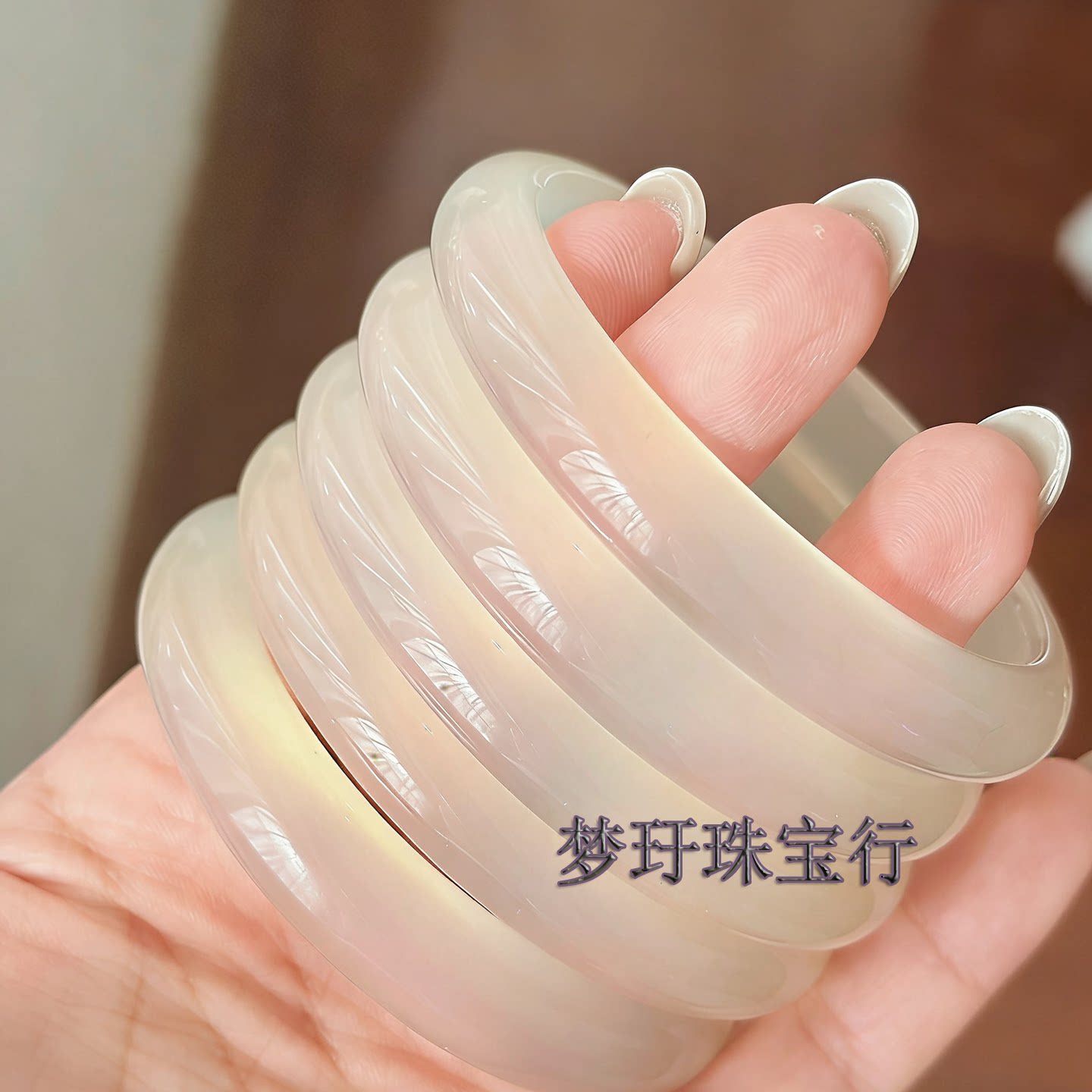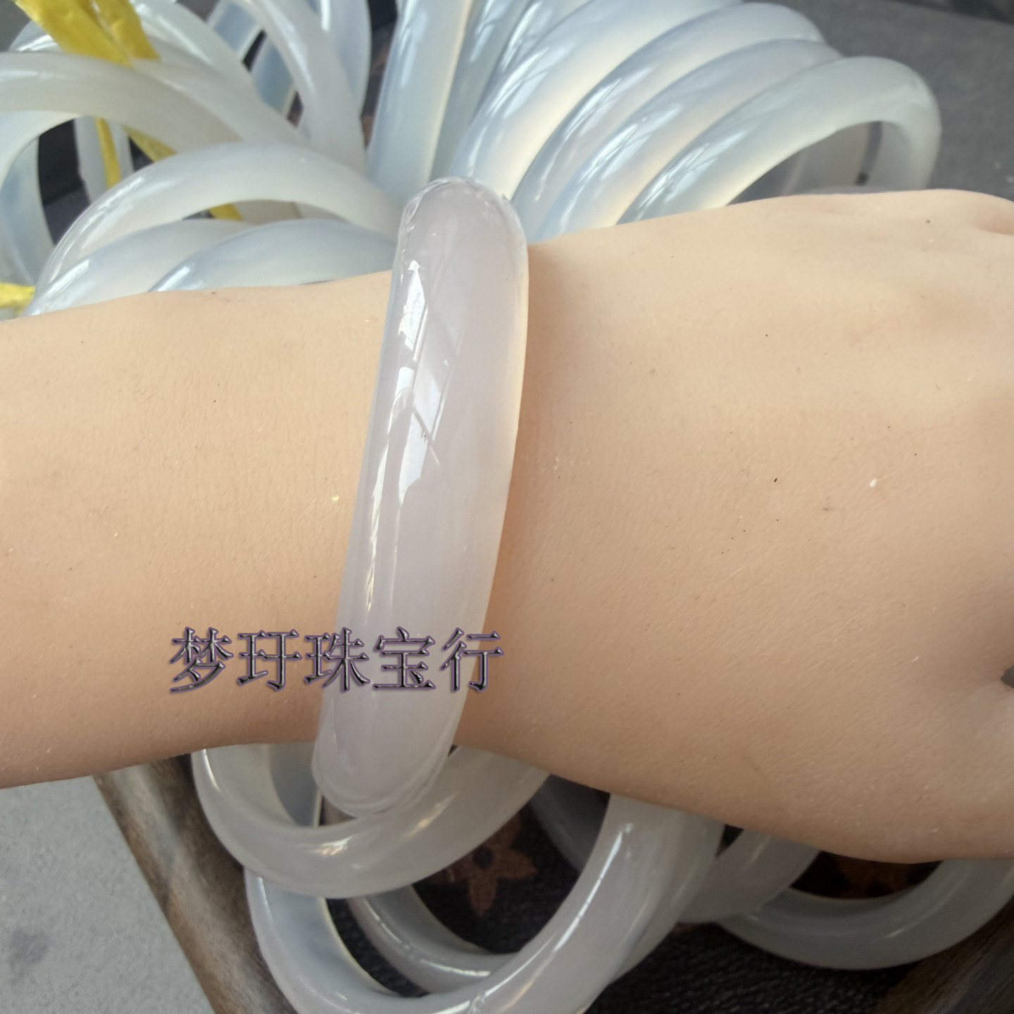 玻璃底玛瑙玉髓手镯女款天然冰种玉镯女士高冰白月光冰糯天然正品