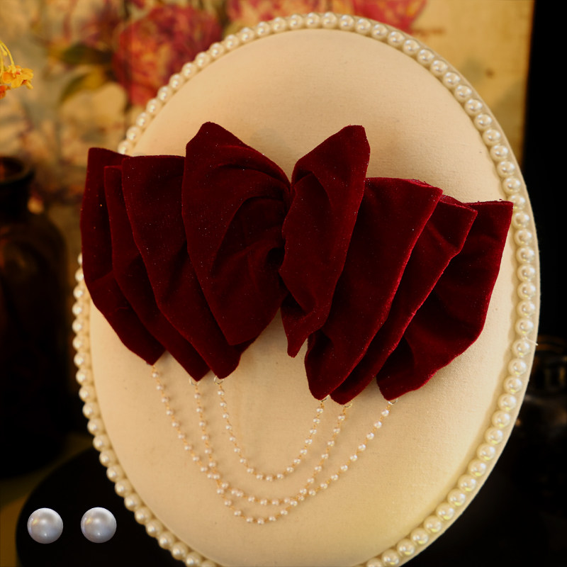 新娘头饰简约时尚气质韩式敬酒造型礼服红色流苏蝴蝶结发夹配饰品