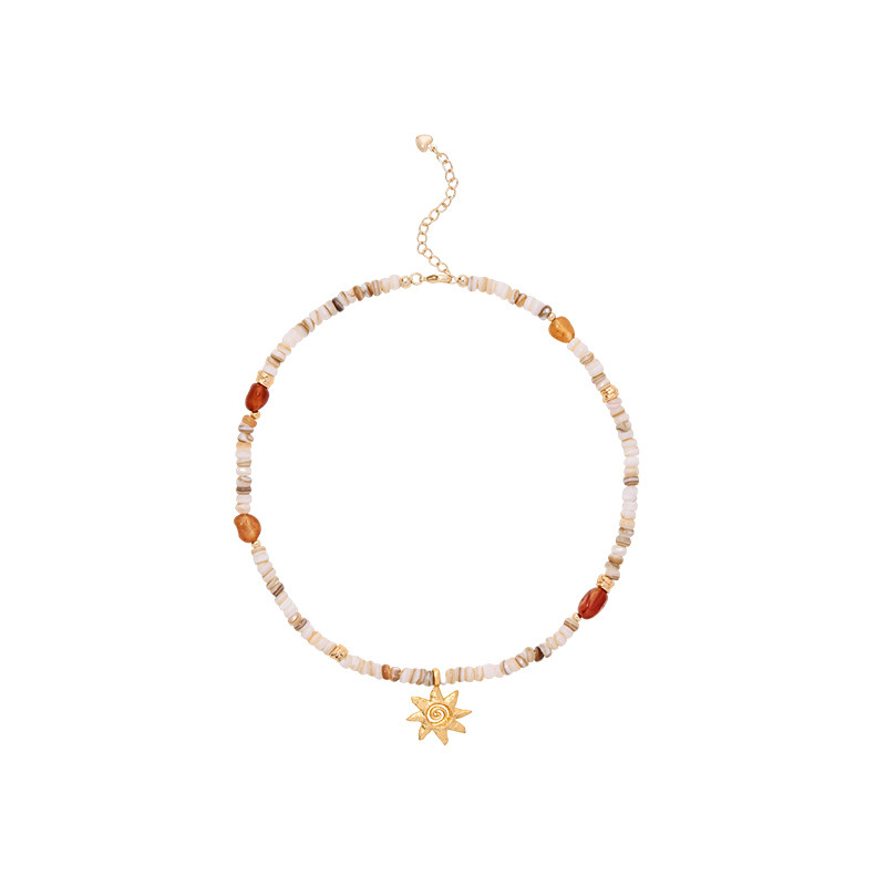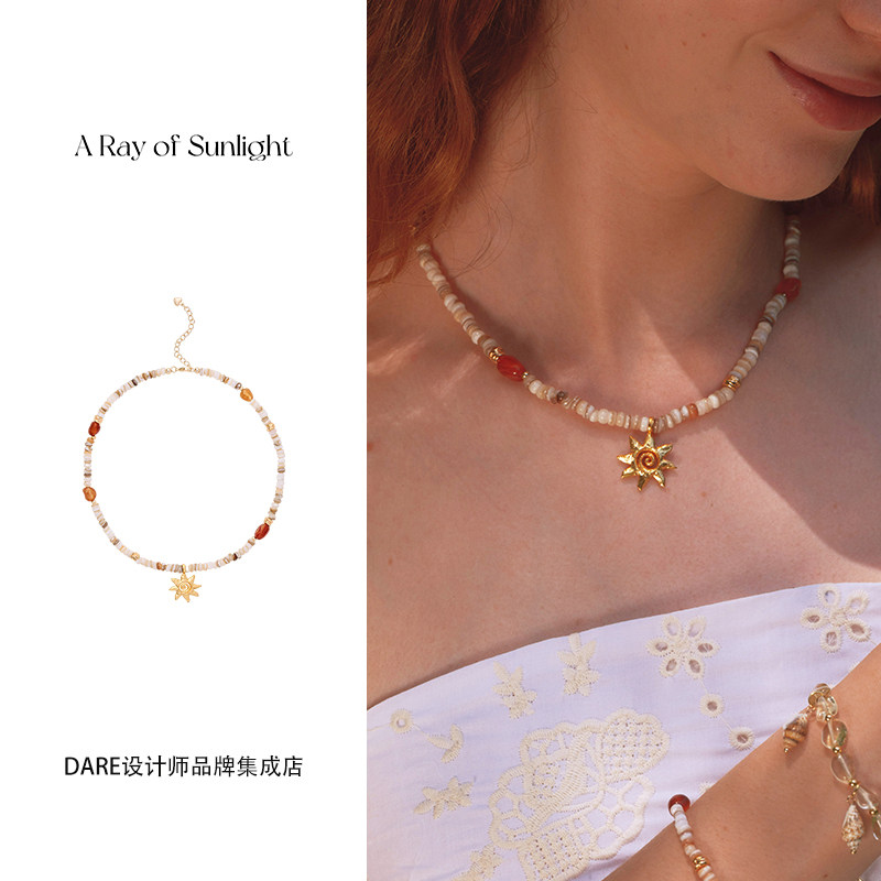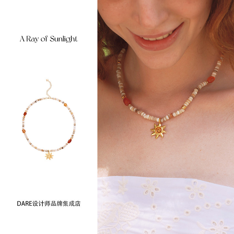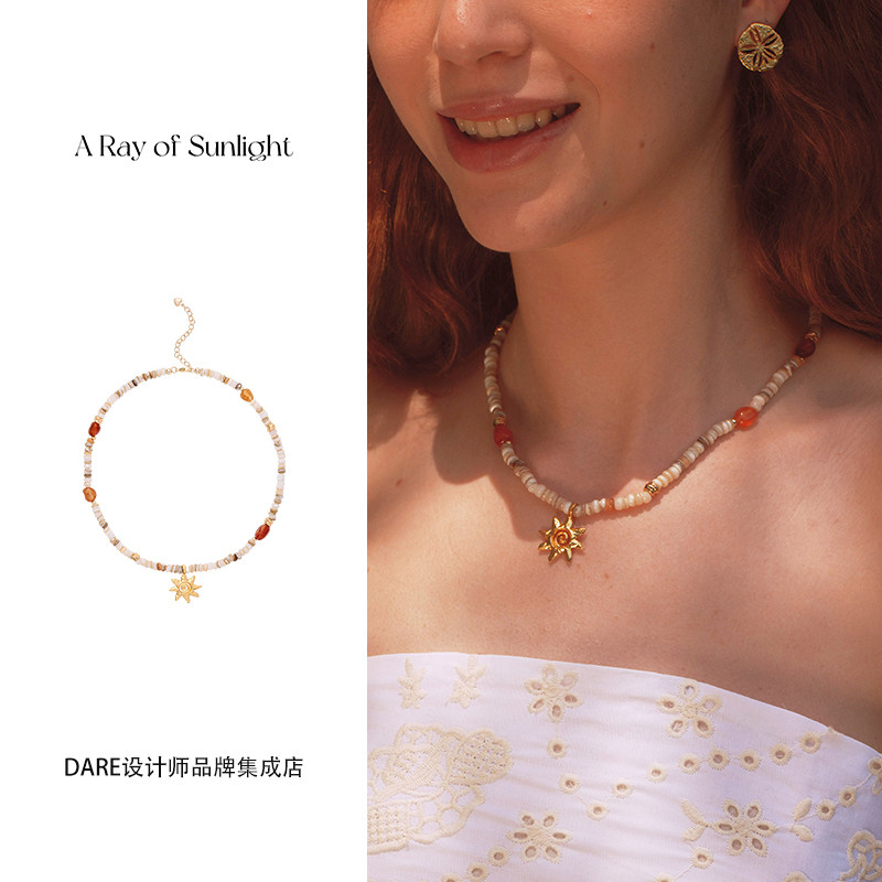 Dare买手店 A ray of sunlight贝壳红玛瑙太阳吊坠项链天然石首饰