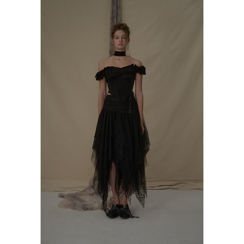 Elywood旗舰店黑蕾丝不规则网纱半裙原创小众设计师品牌春夏新款