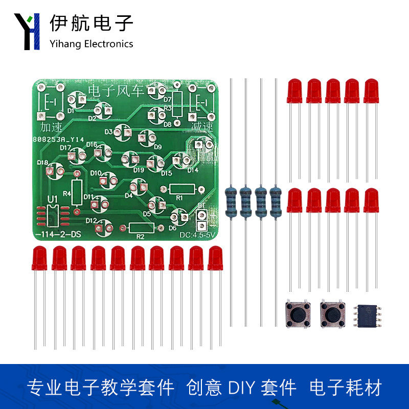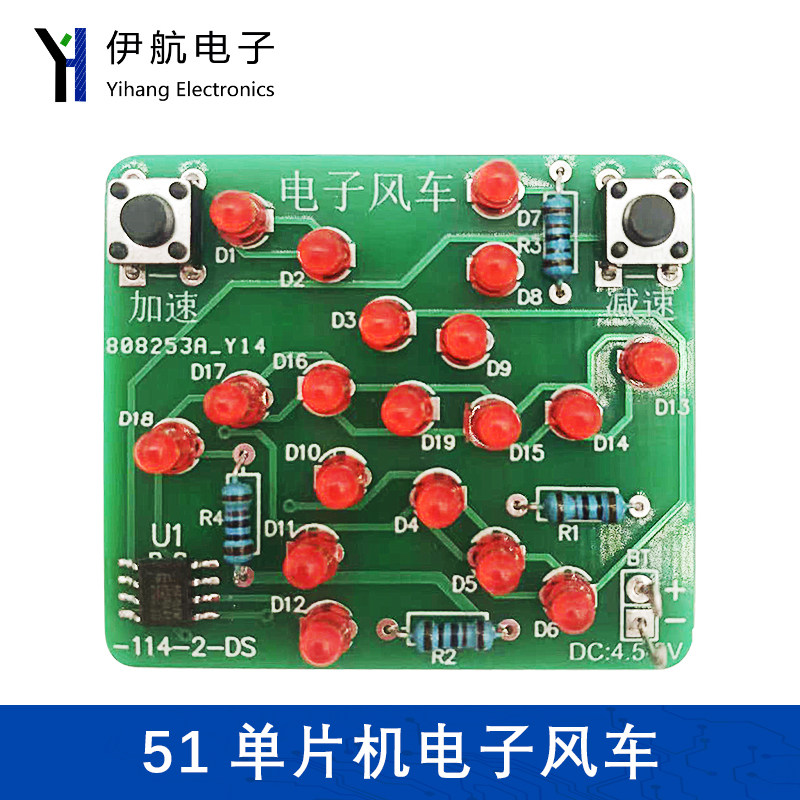 电子风车套件51单片机趣味diy旋转灯流水灯实训焊接电路板YH-114