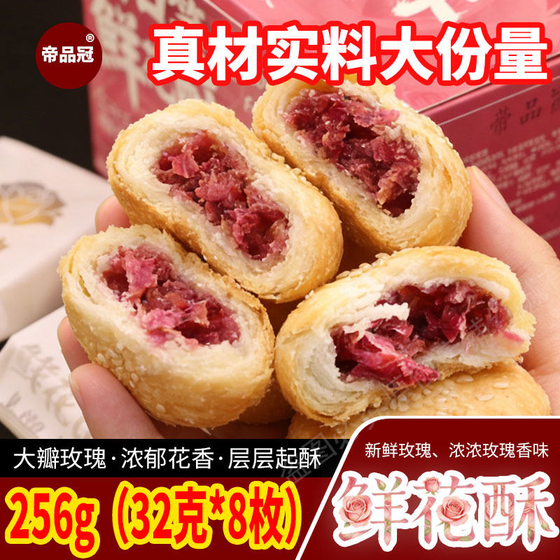 帝品冠滇品开口笑鲜花饼云南特产酥皮传统玫瑰花办公早餐糕点零食
