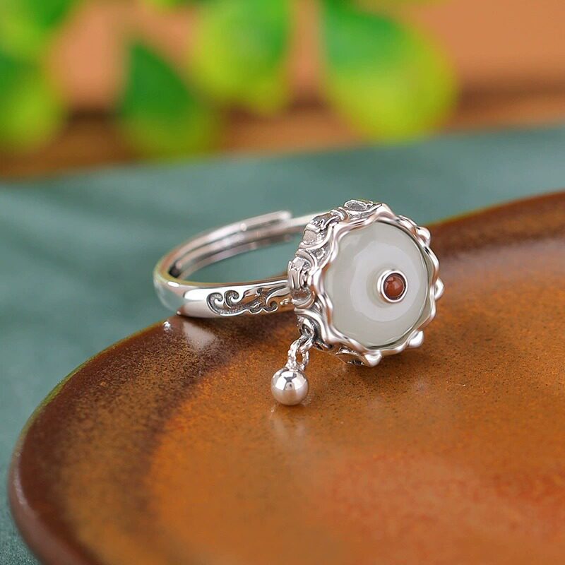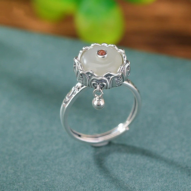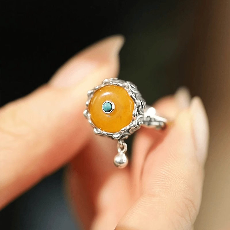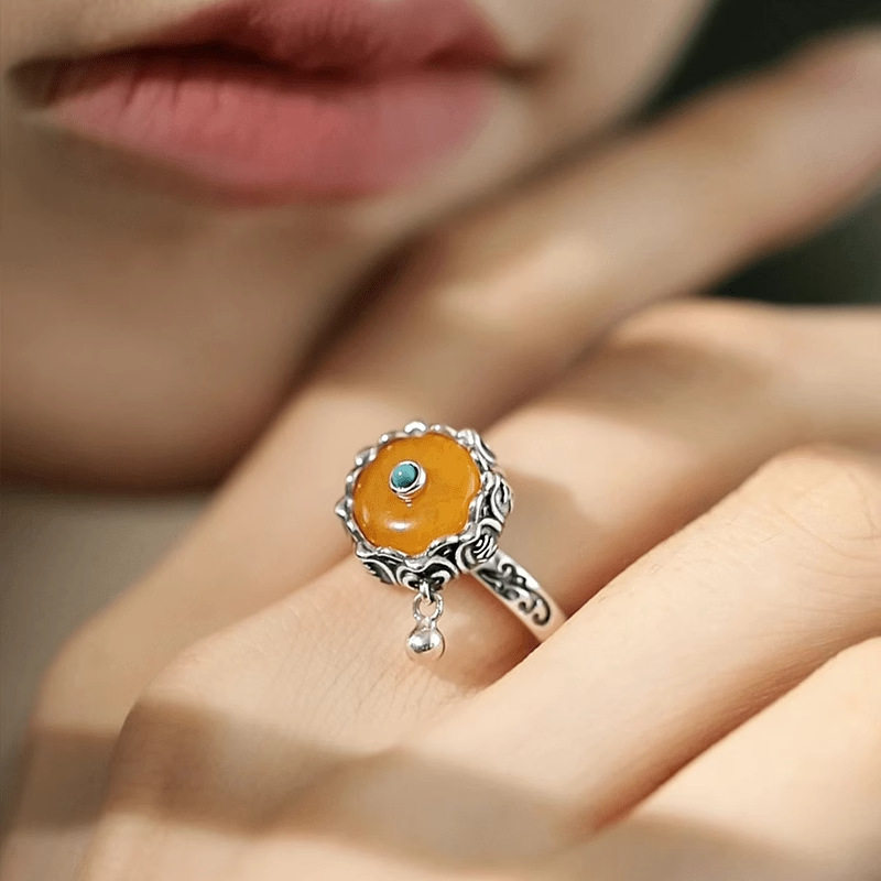 925银复古戒指环开口可调节女蜜蜡小众设计气质可旋转简约高级感