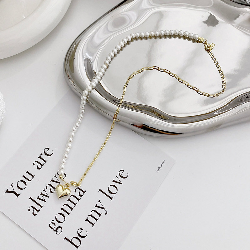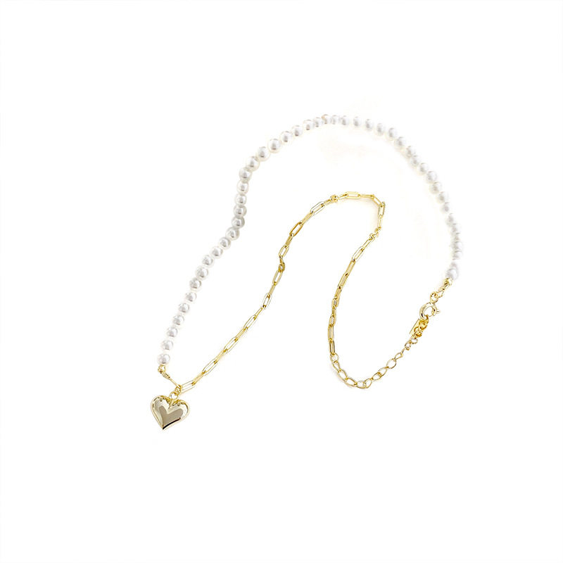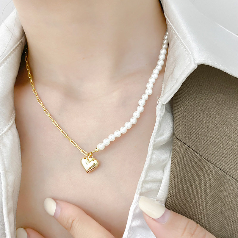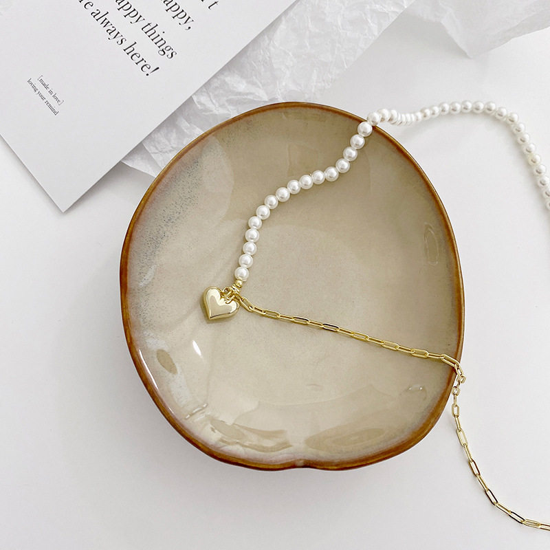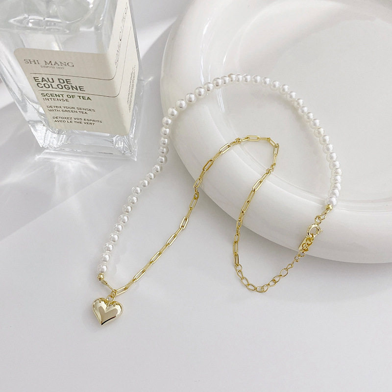 14K金色爱心贝珠项链女生夏季法式小香风ins轻奢锁骨链小红书同款