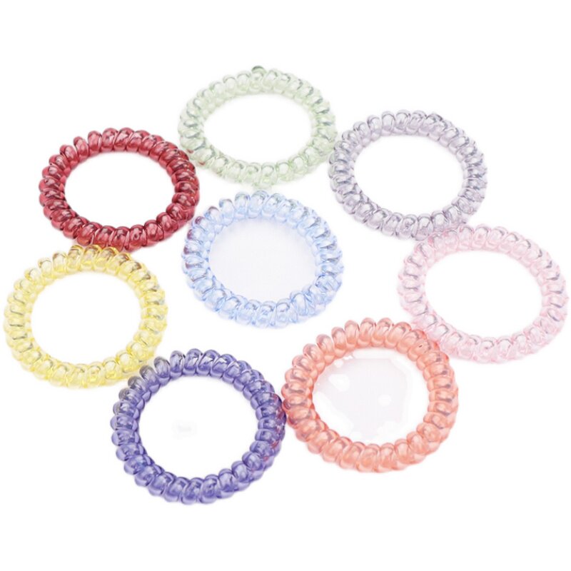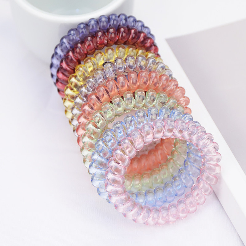 夏日糖果色透明电话线发绳小清新海洋风情发饰女士发圈高弹力