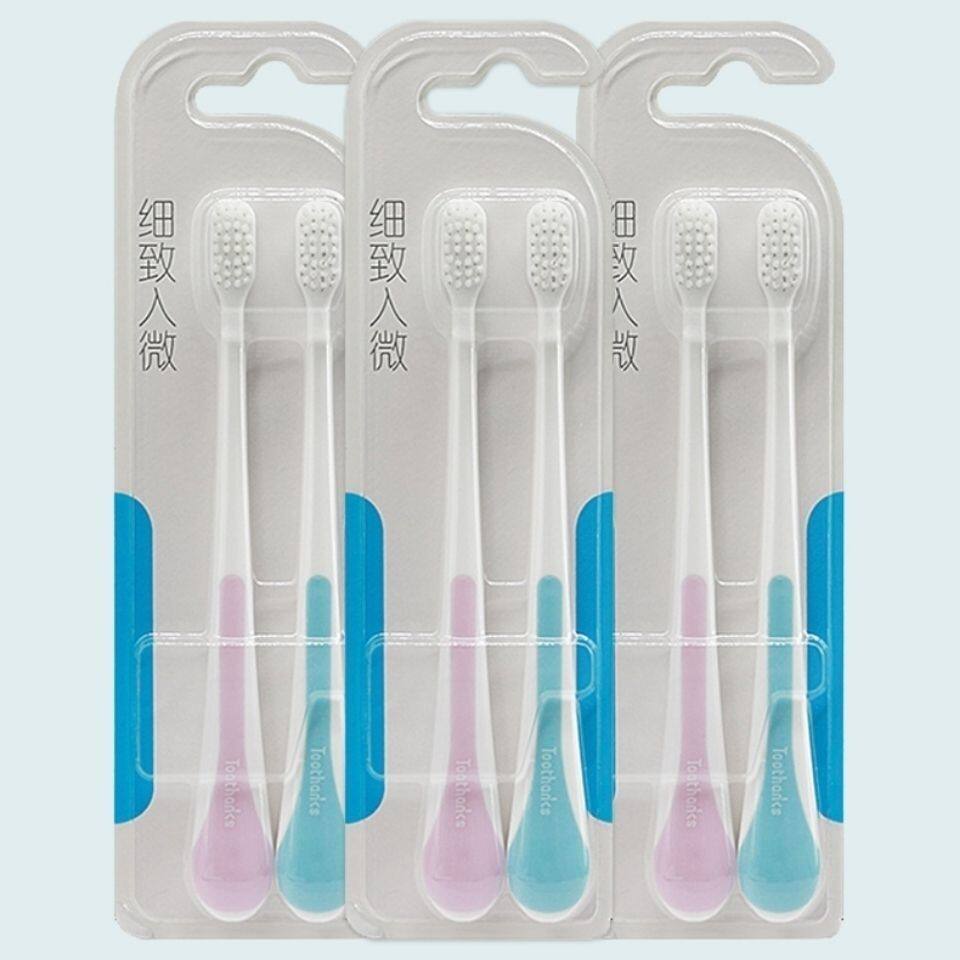 皎洁双重功效牙刷双支小头软毛超细护齿护龈男女成人通用家庭套装