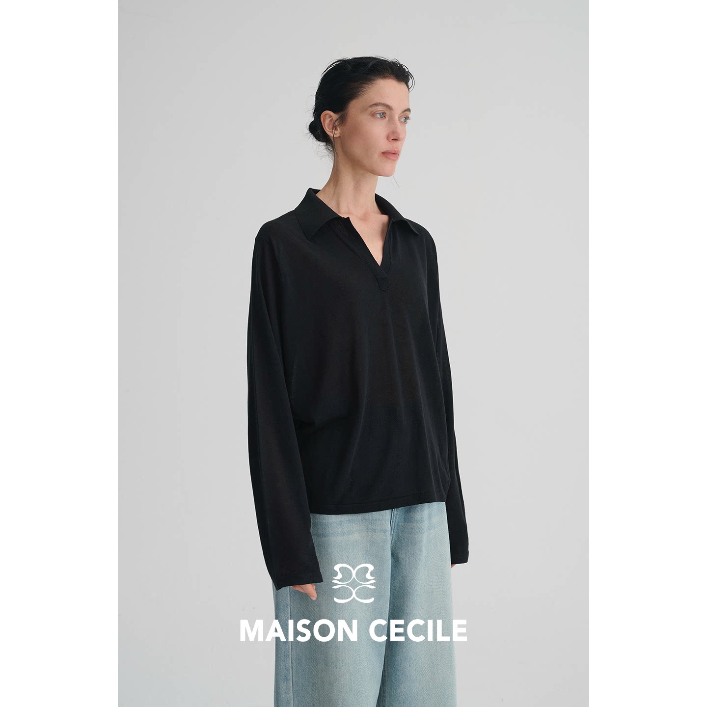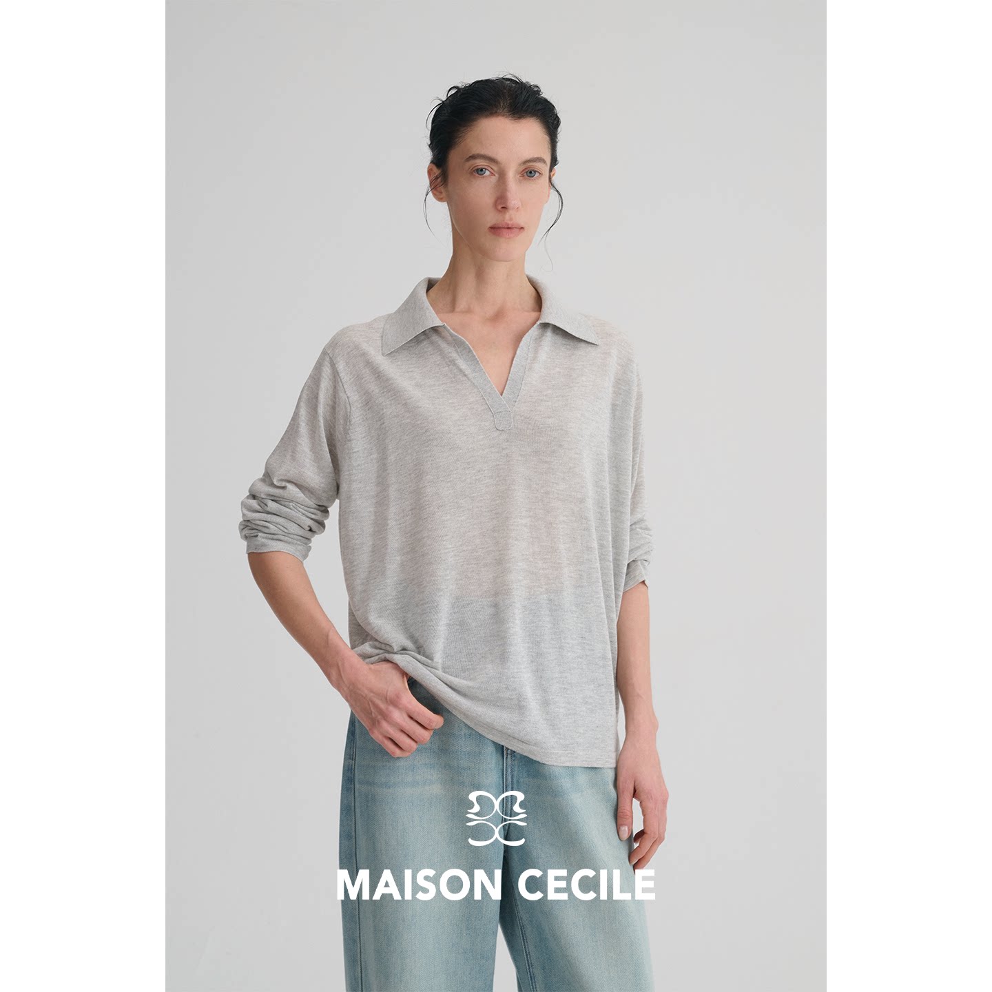 MAISON CECILE 三色|莱赛尔亚麻微透呼吸感简约优雅V领polo衫上衣
