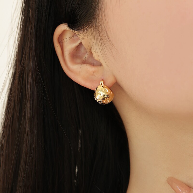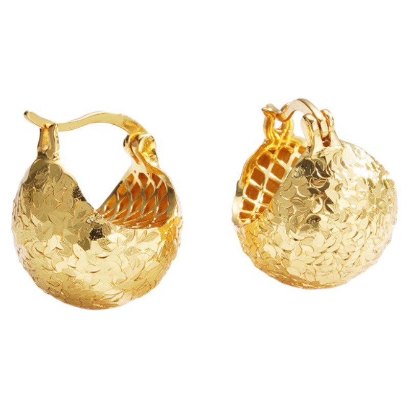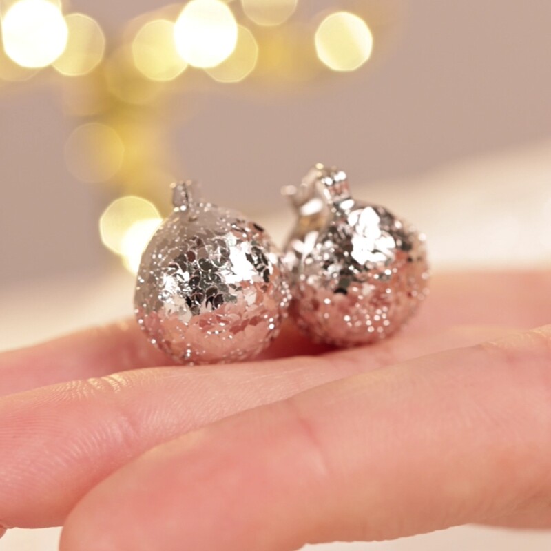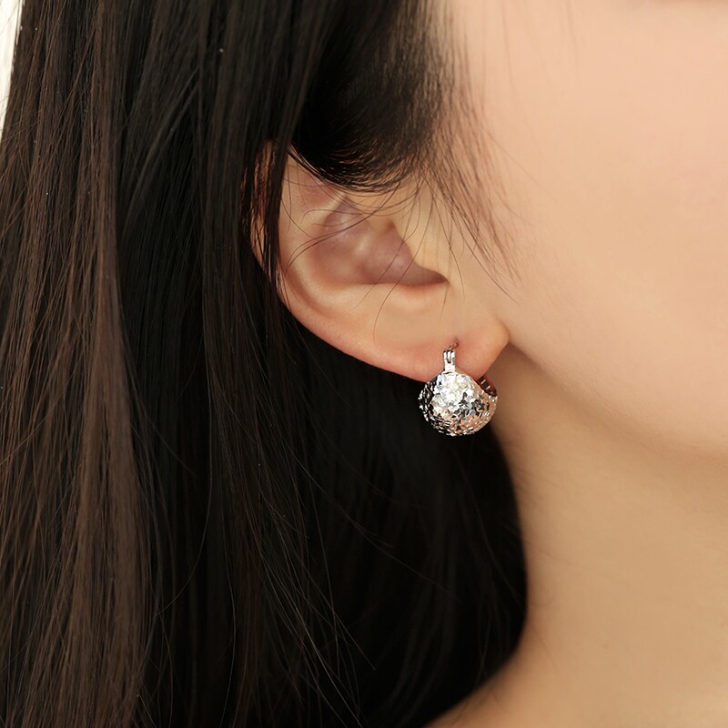 卓蝶珠宝纯银镀18k金碎碎冰耳环时尚爆闪耳球圆形鱼鳞亮片耳扣女