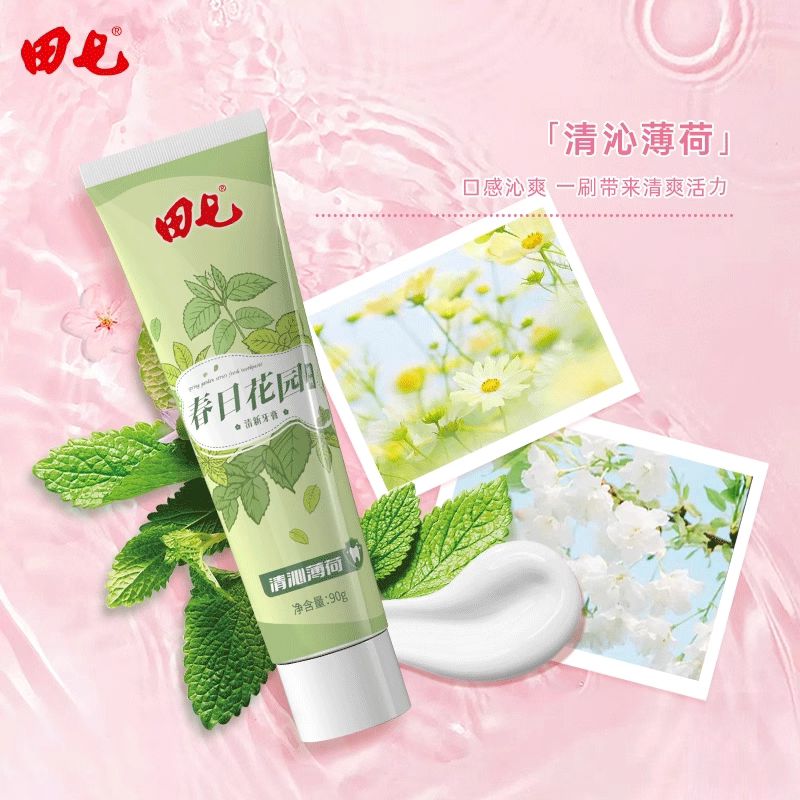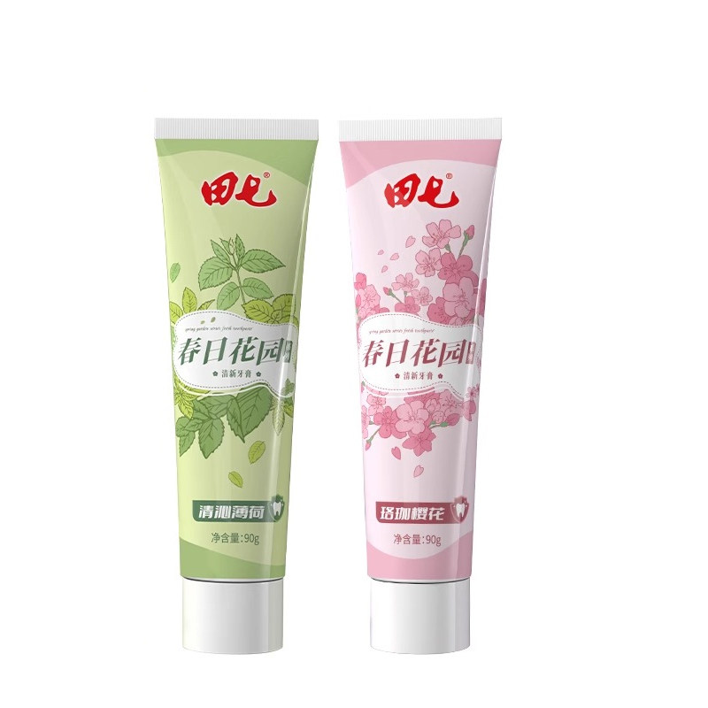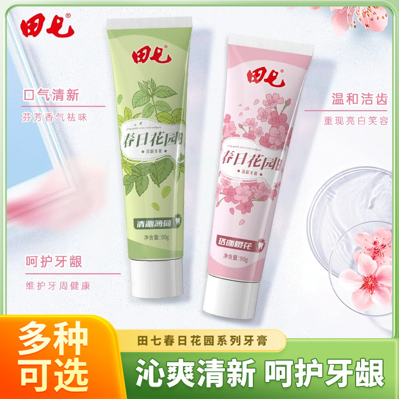 田七春日花园系列牙膏90g薄荷樱花清新口气男女学生家庭