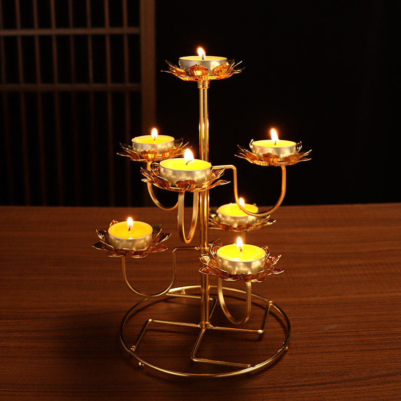 酥油灯座寺庙灯架佛堂供奉蜡烛台七星灯108盏莲花长明灯合金佛具