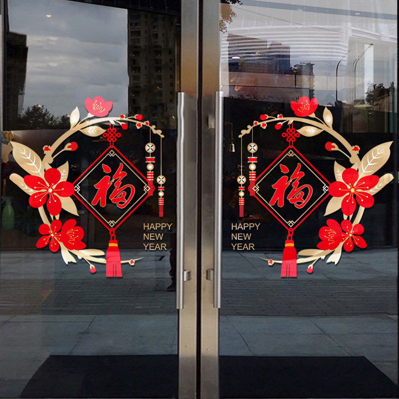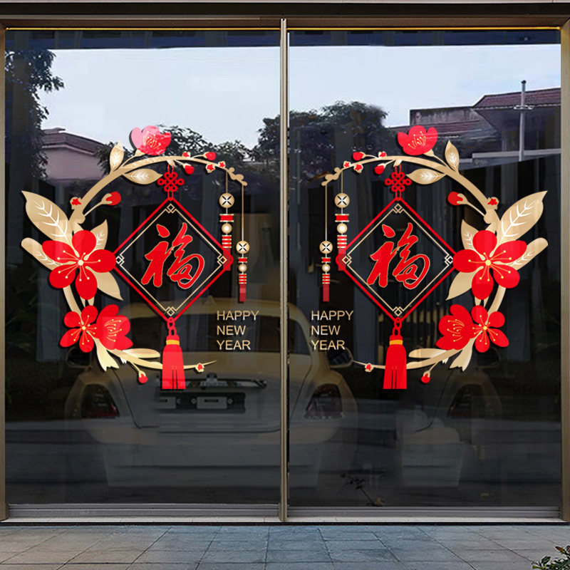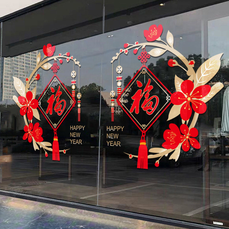 新年装饰窗花玻璃贴橱窗过年布置福字贴画元旦春节龙年窗贴门贴纸