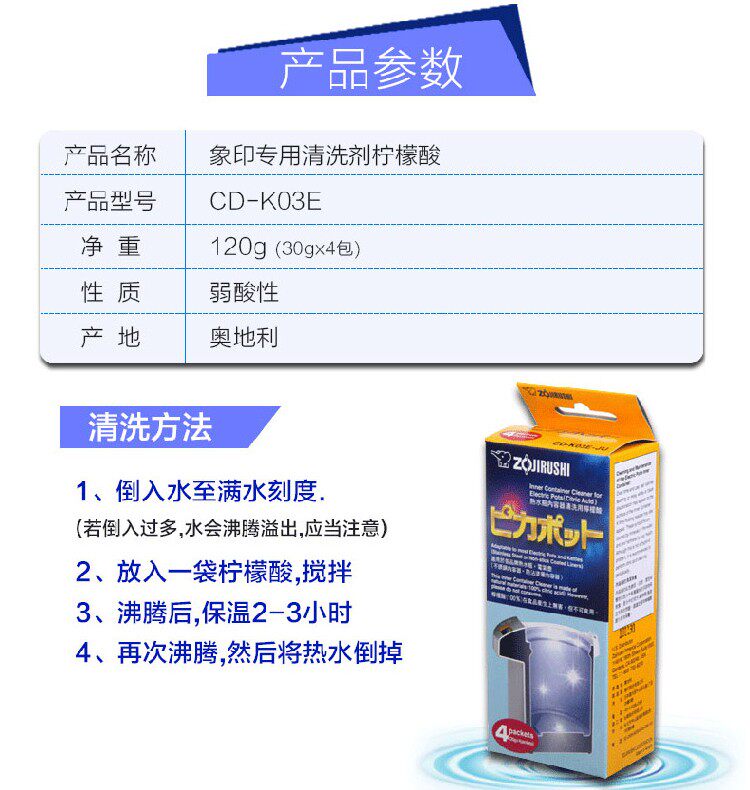 象印电热水瓶壶 柠檬酸清洁清洗粉CD-K03E 水垢清除剂除垢剂污剂