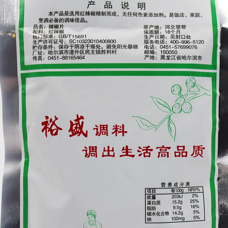 裕盛辣椒片辣椒粉辣椒面辣辣椒油配料厨房川菜料又香又辣25克5袋