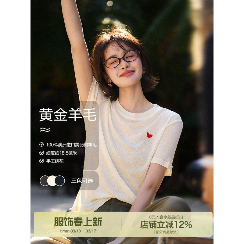 「小浪漫 甜心T 」薄款亲肤澳毛!精致刺绣圆领T恤/短袖小上衣