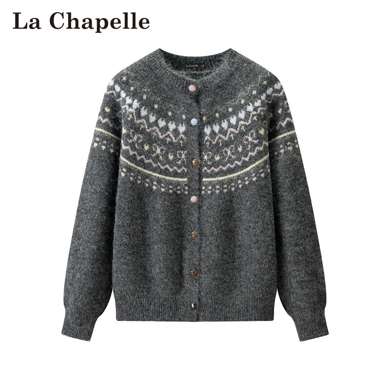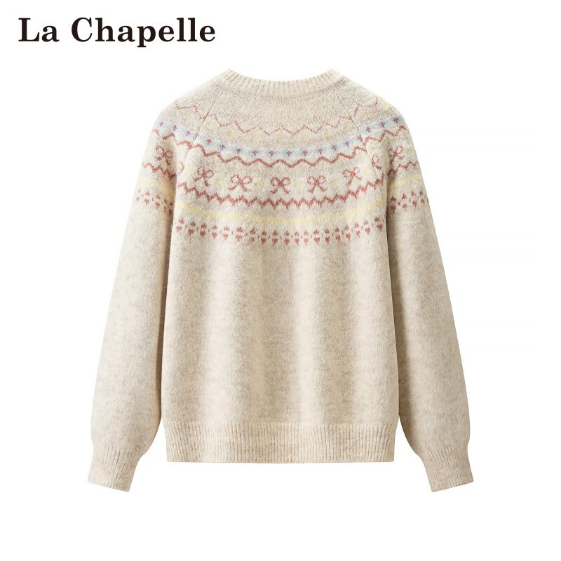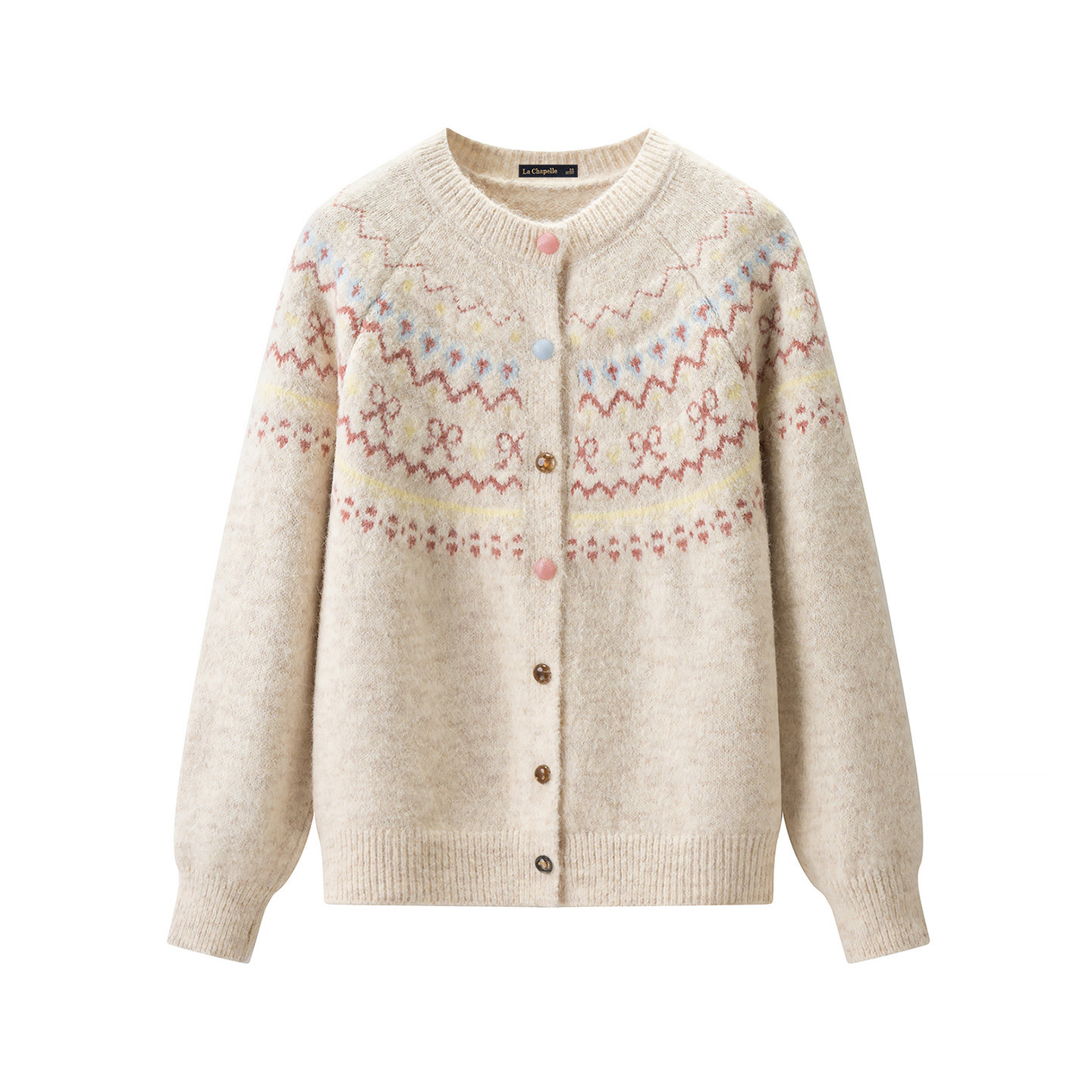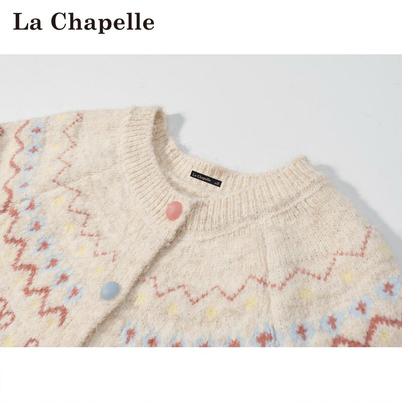拉夏贝尔/La Chapelle冬季新款费尔岛提花甜美通勤风针织毛衣外套