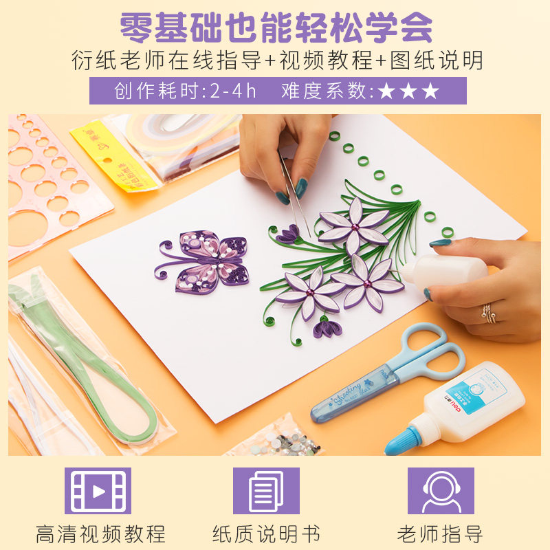 a4盆摘植物衍纸画手工套装上课材料包线稿图工具DIY创意衍纸作品