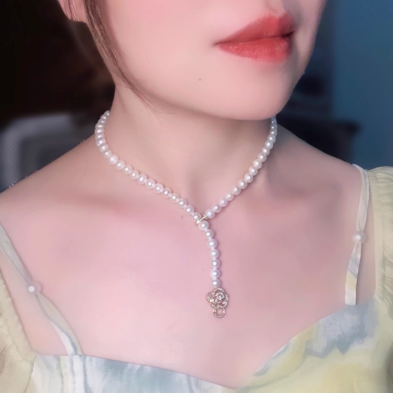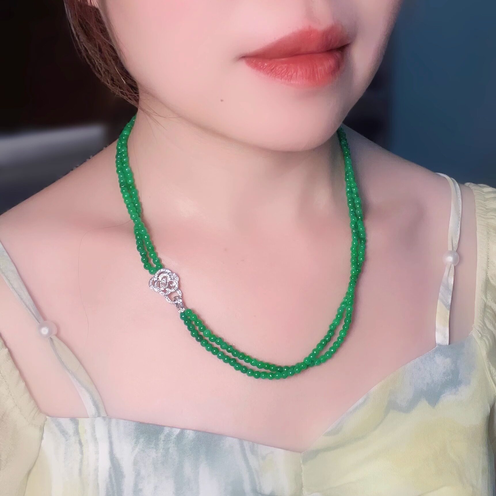 18k金镶嵌天然钻石茶花多戴双排翡翠珠链金扣珍珠项链手连接配件
