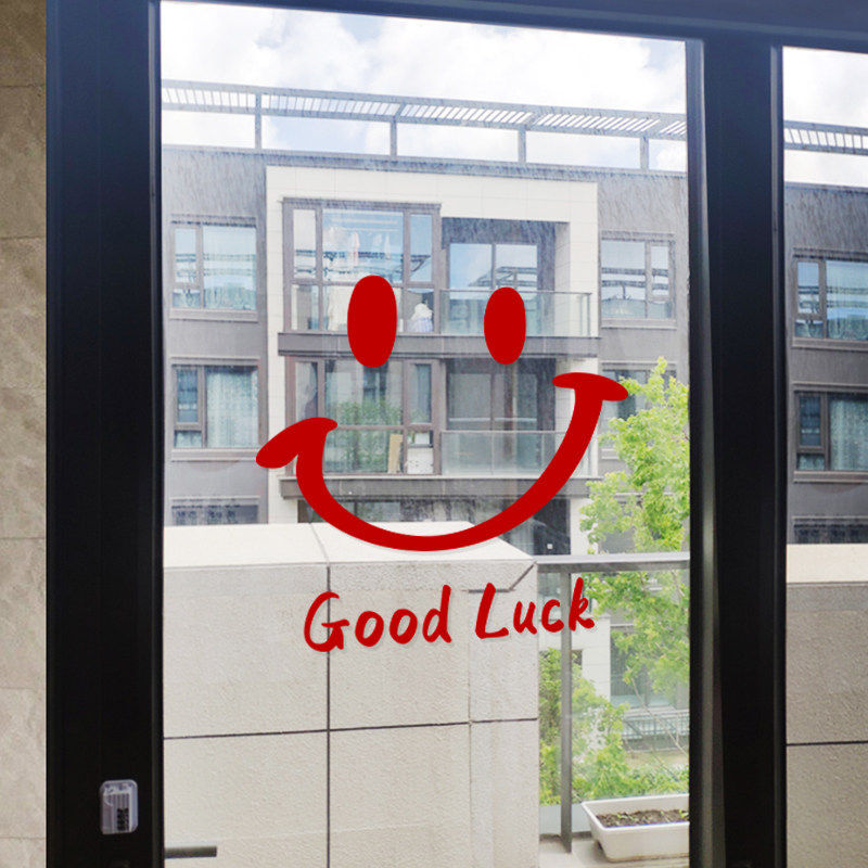 可爱笑脸好运祝福心愿橱窗玻璃推拉门阳台窗户防撞防水装饰贴纸画