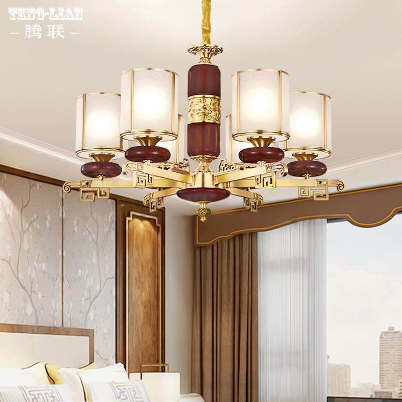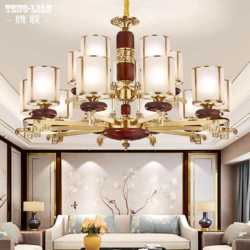 中式大气客厅吊灯全铜卧室大厅房间书房吊灯复式楼梯大灯家用灯具
