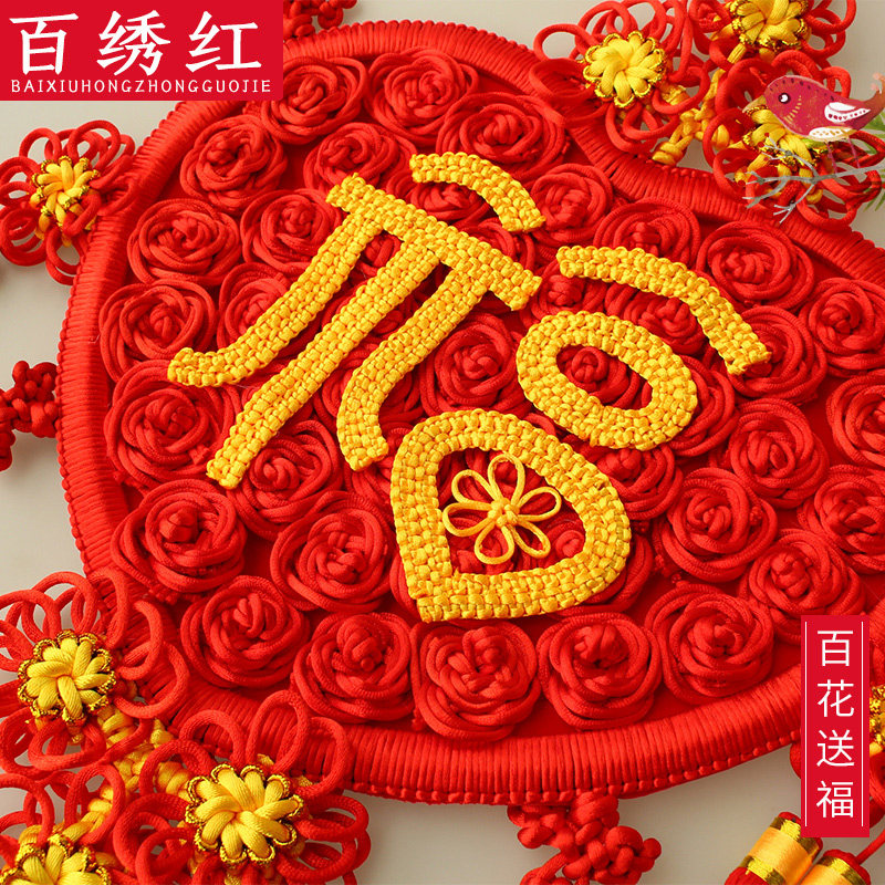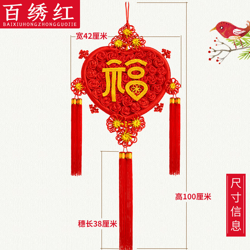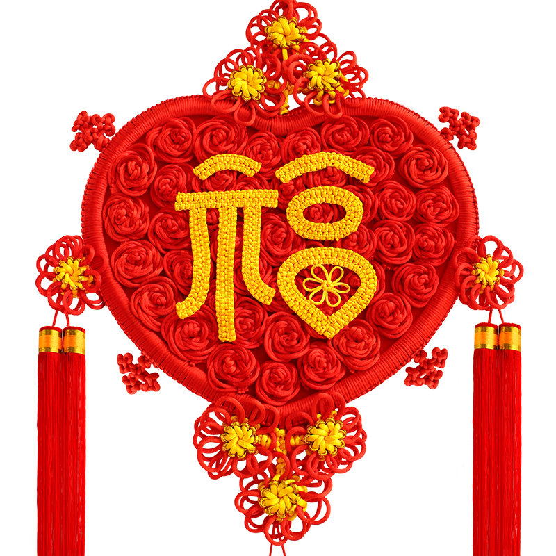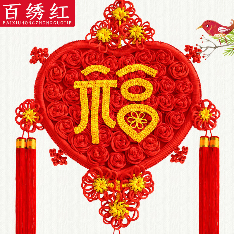 百绣红福字中国结玫瑰心型客厅挂件玄关卧室挂饰喜庆送礼开业佳品