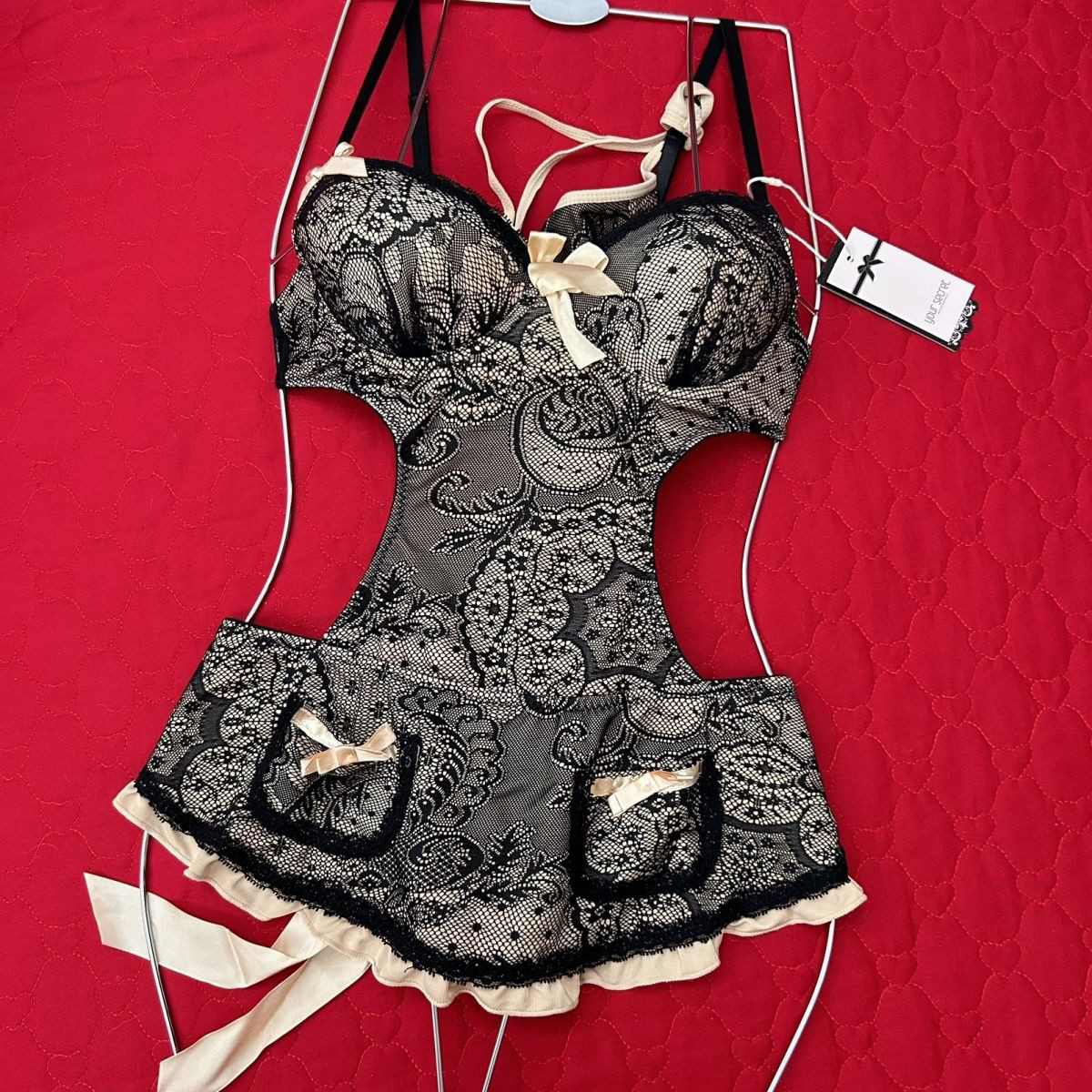性感睡衣女夏季钢圈带胸垫聚拢吊带露背睡裙cos女仆装惹火