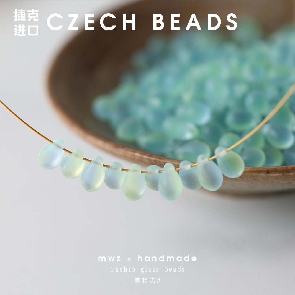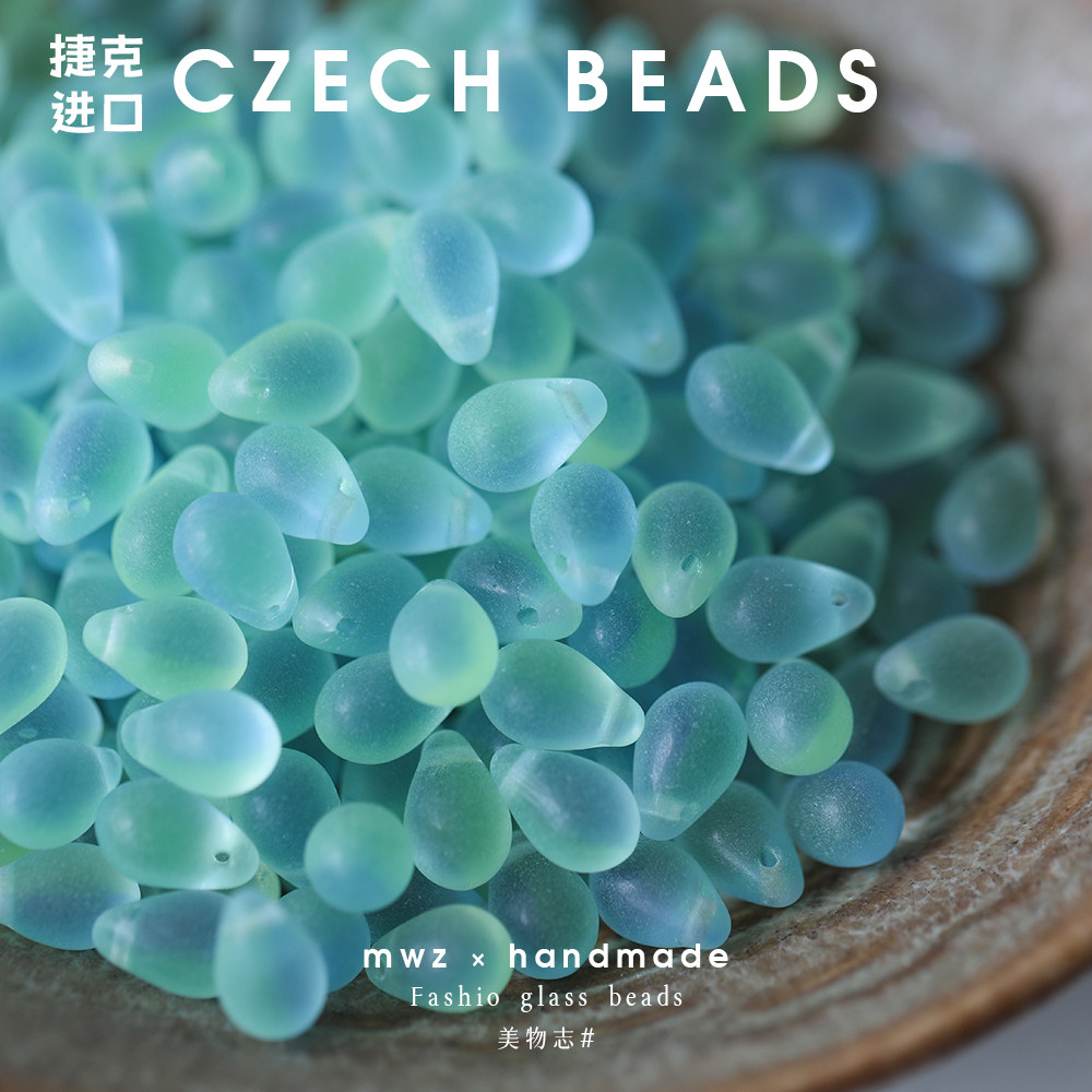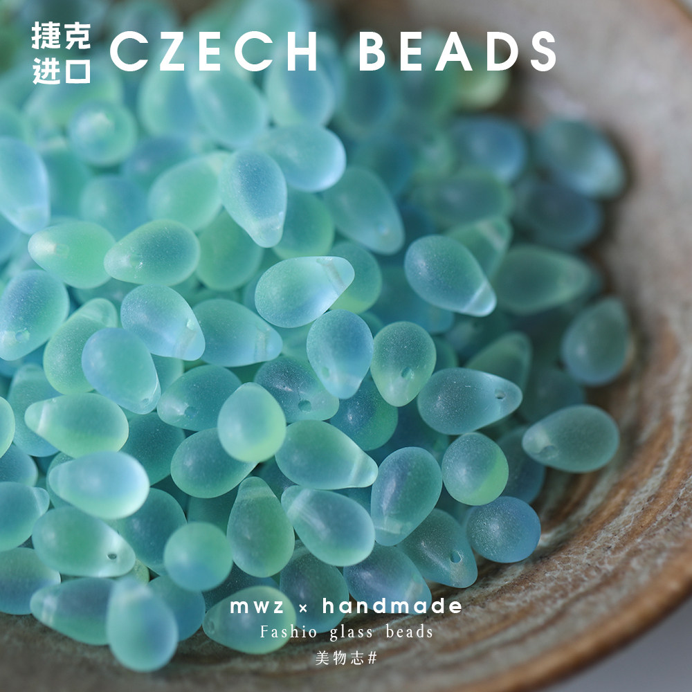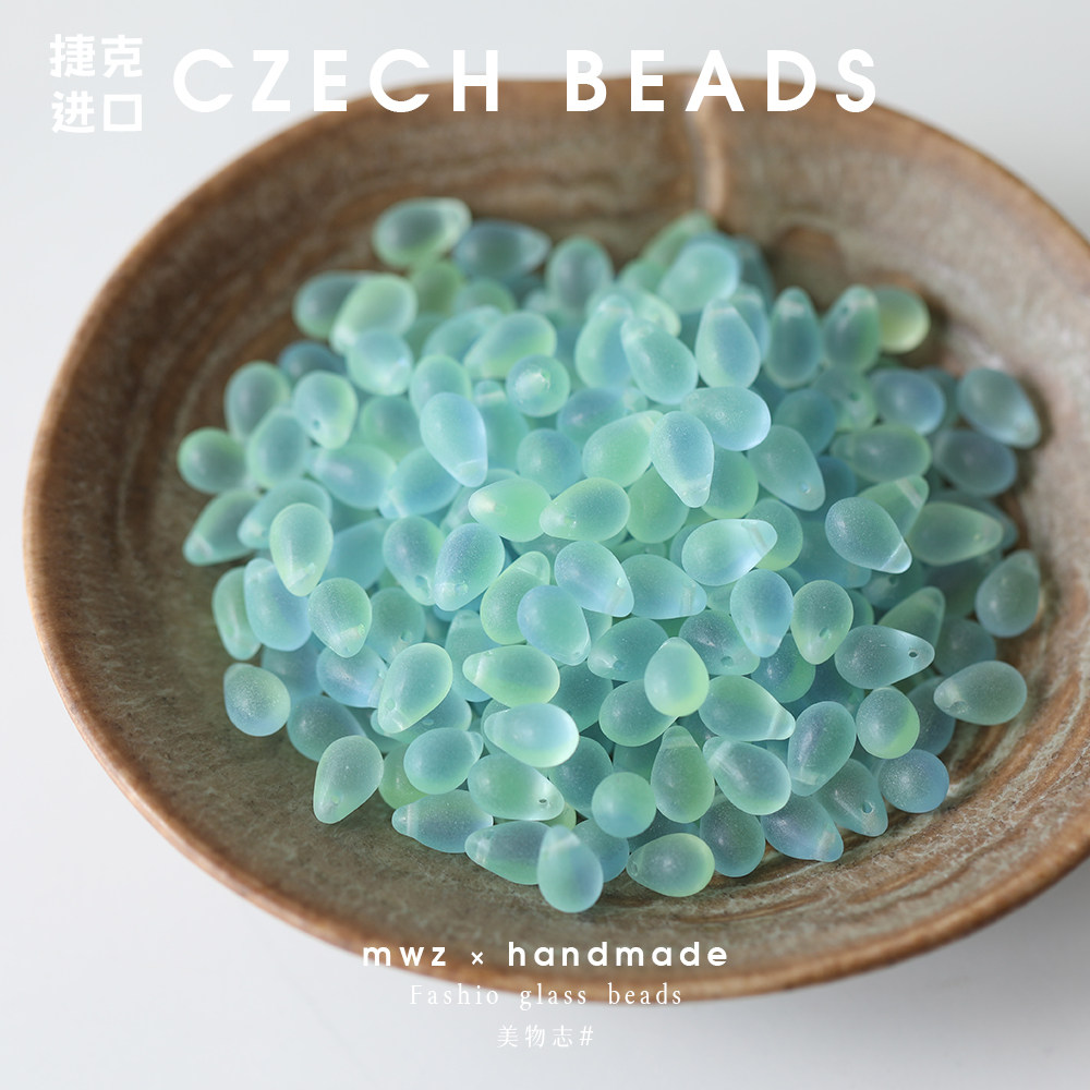进口捷克珠磨砂渐变蓝绿幻色水滴6*9mm 手工串珠DIY材料饰品配件