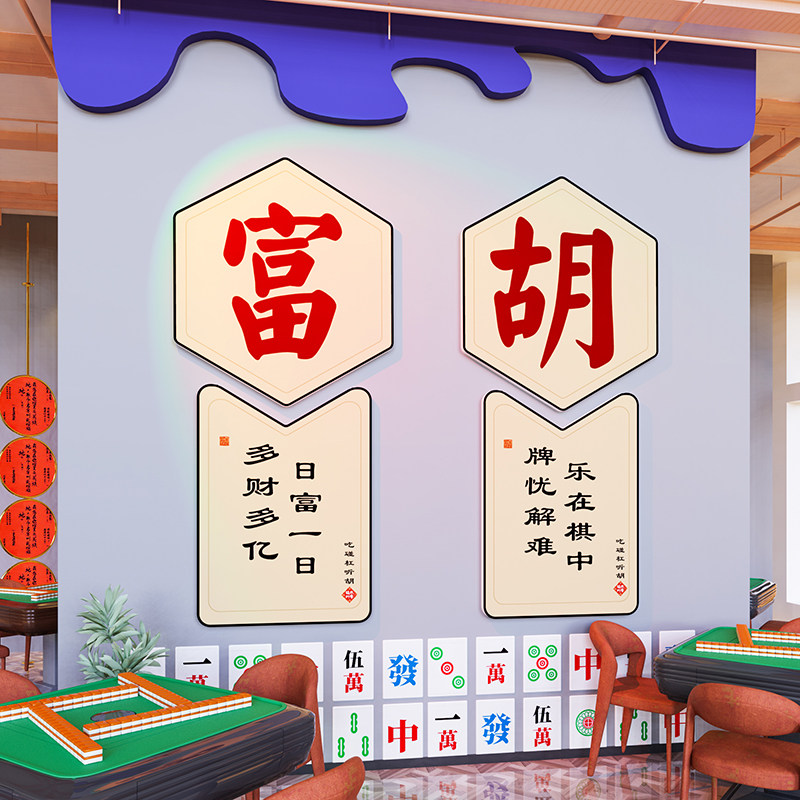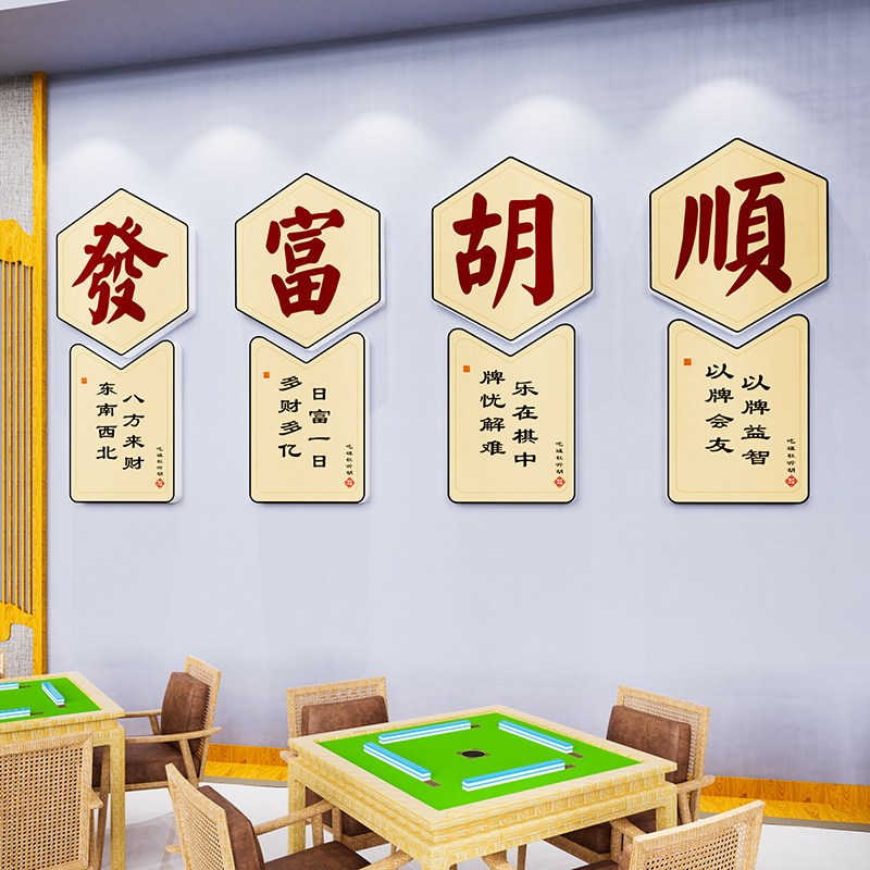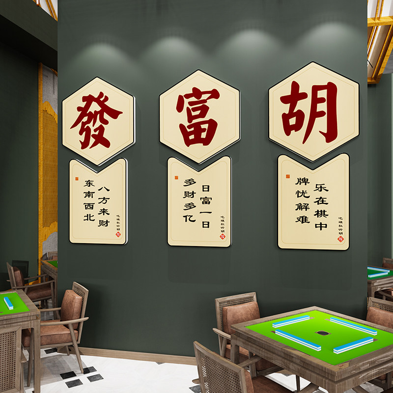 麻将馆厅主题文化棋牌室装饰画茶楼麻雀房间包厢背景标语墙贴纸3d