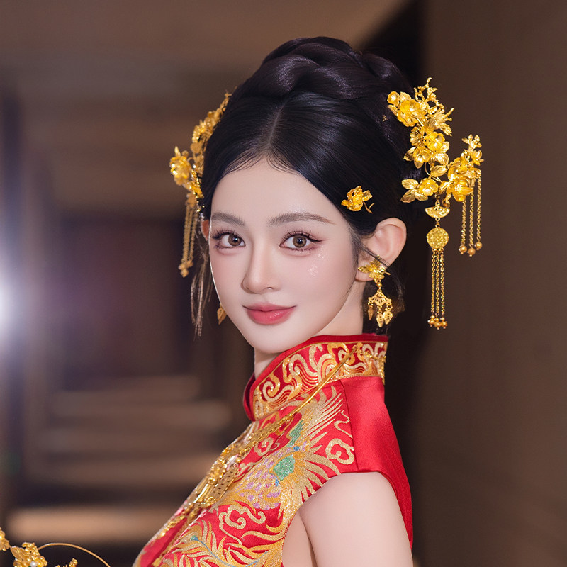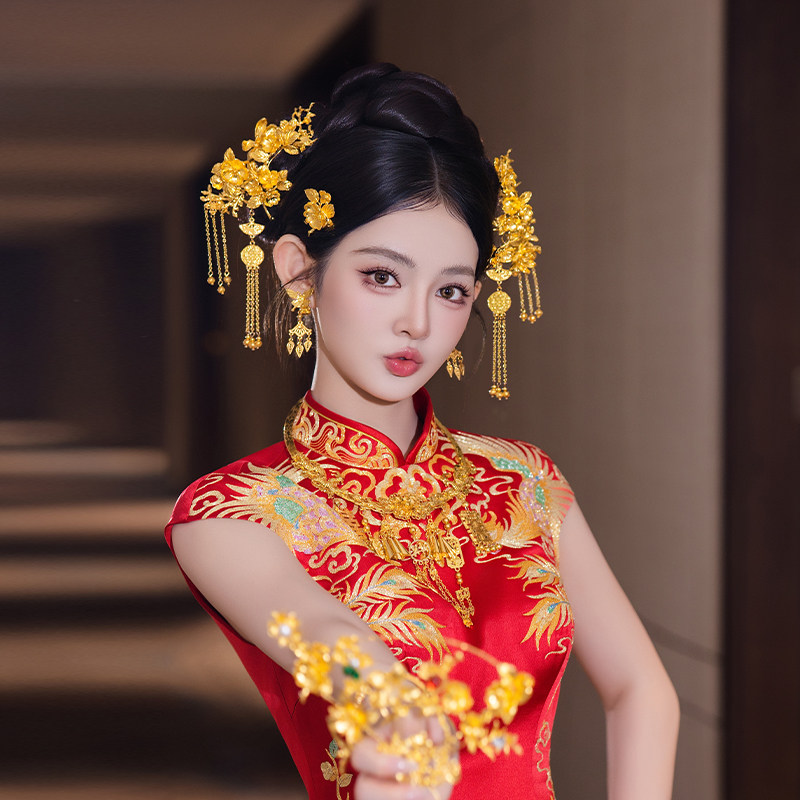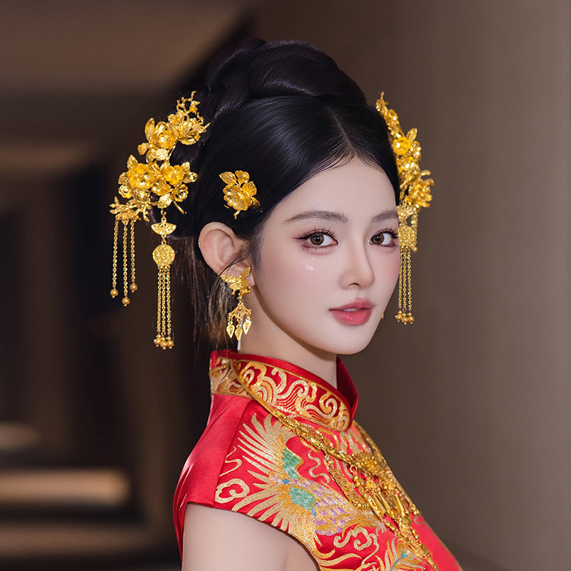 新娘贵气秀禾服结婚头饰全金色百搭减龄龙凤褂旗袍新中式流苏发饰