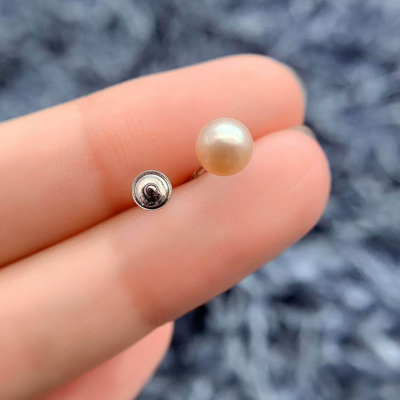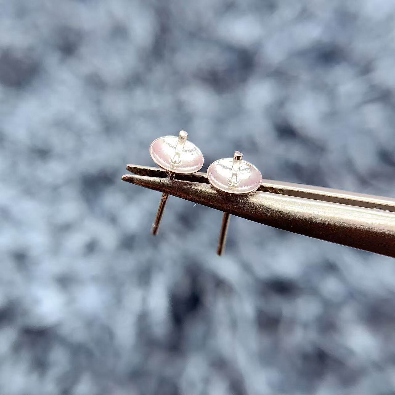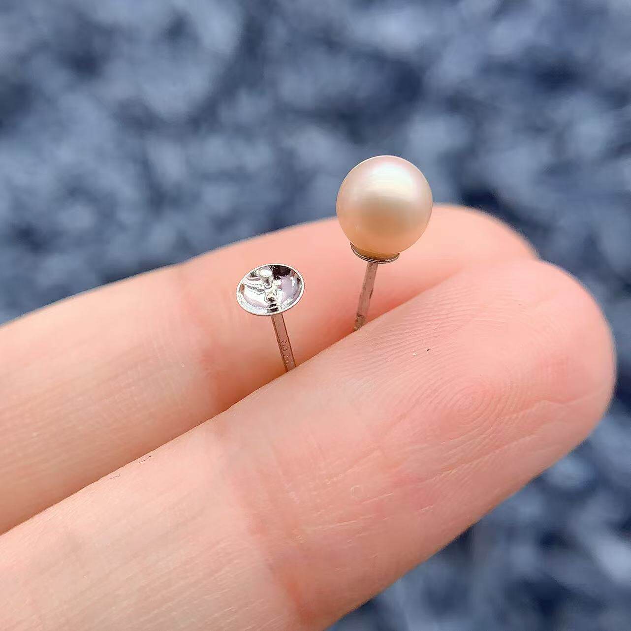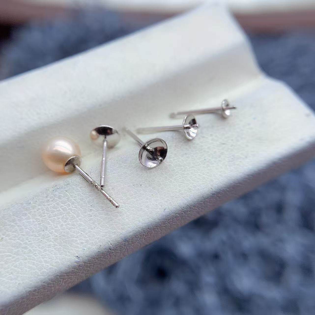 s925纯银珍珠耳钉空托圆形3*3/4*4/5*5mm百搭半孔珍珠圆珠银托