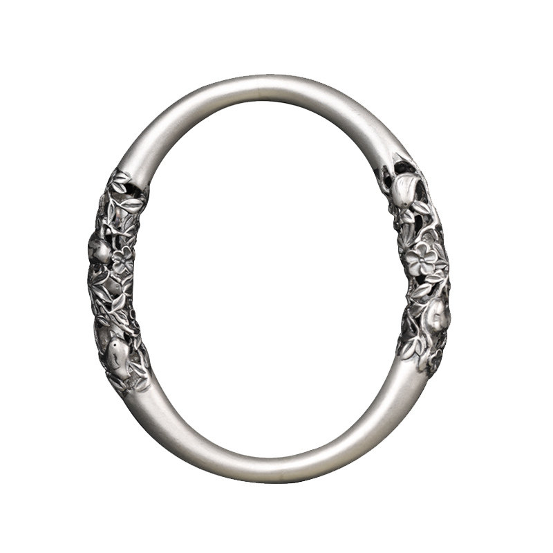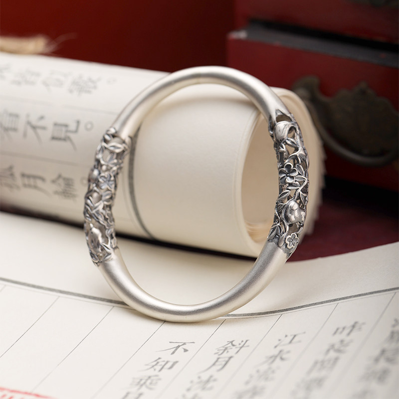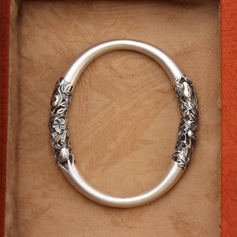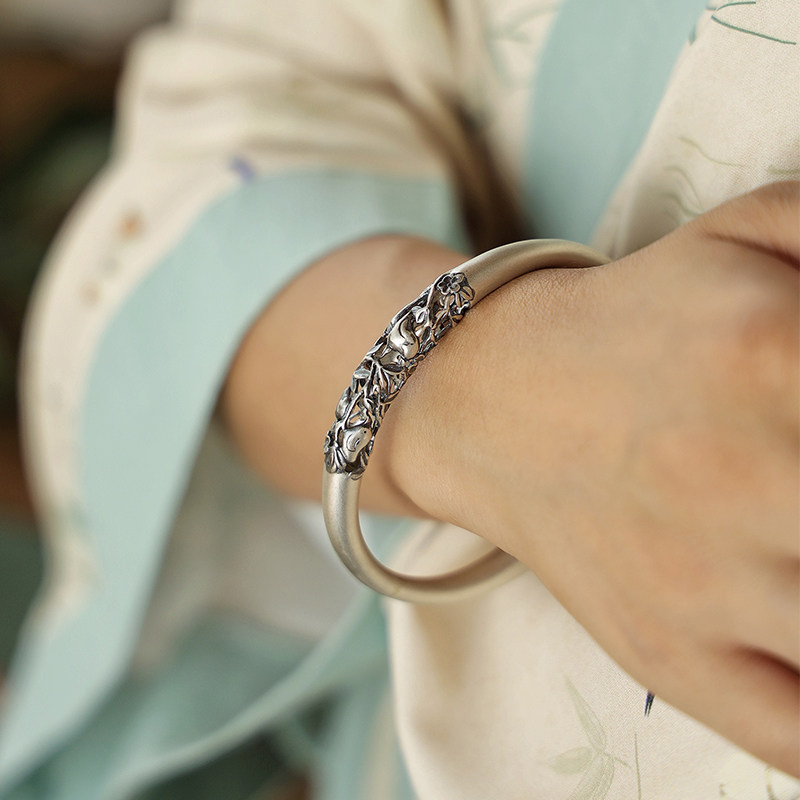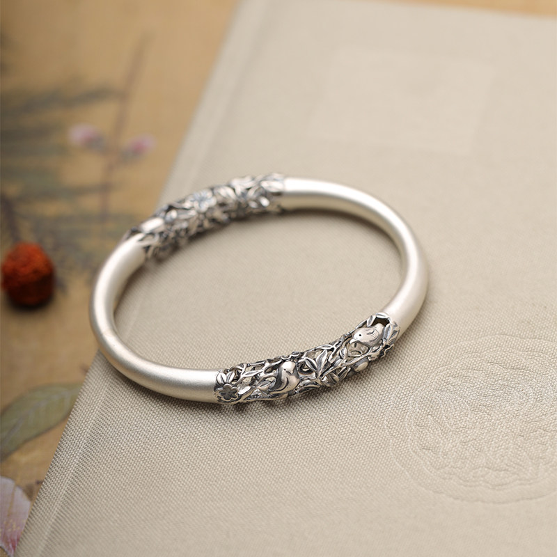 「喜相逢」熙素原创手工精雕复古镂空银手镯女喜鹊梅花贵妃镯手环
