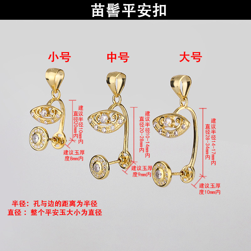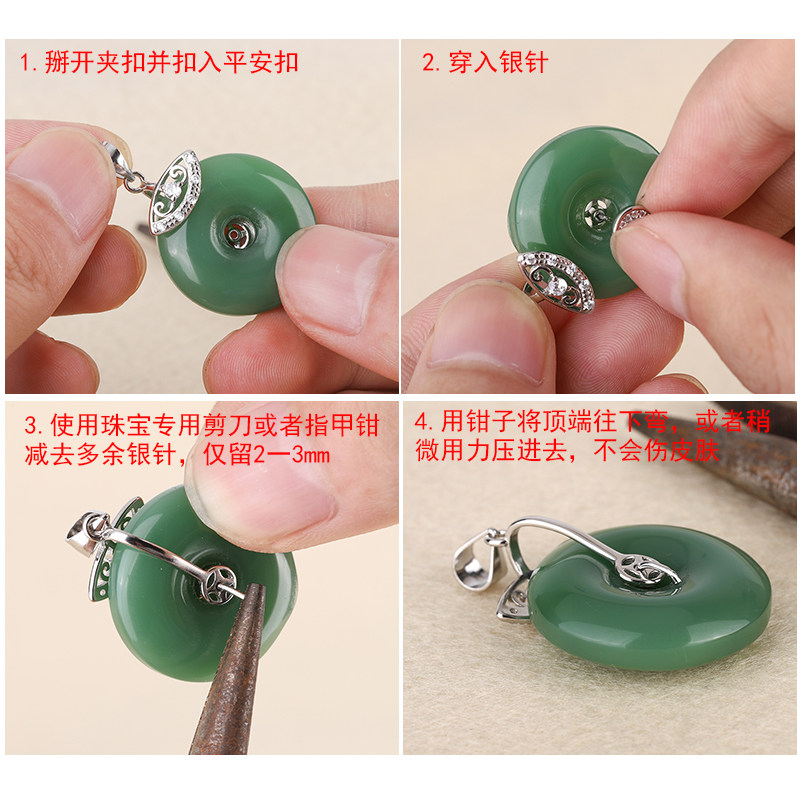 平安扣圆环扣S925纯银吊坠扣头玉石夹扣平安扣头银夹扣苗髻银卡扣