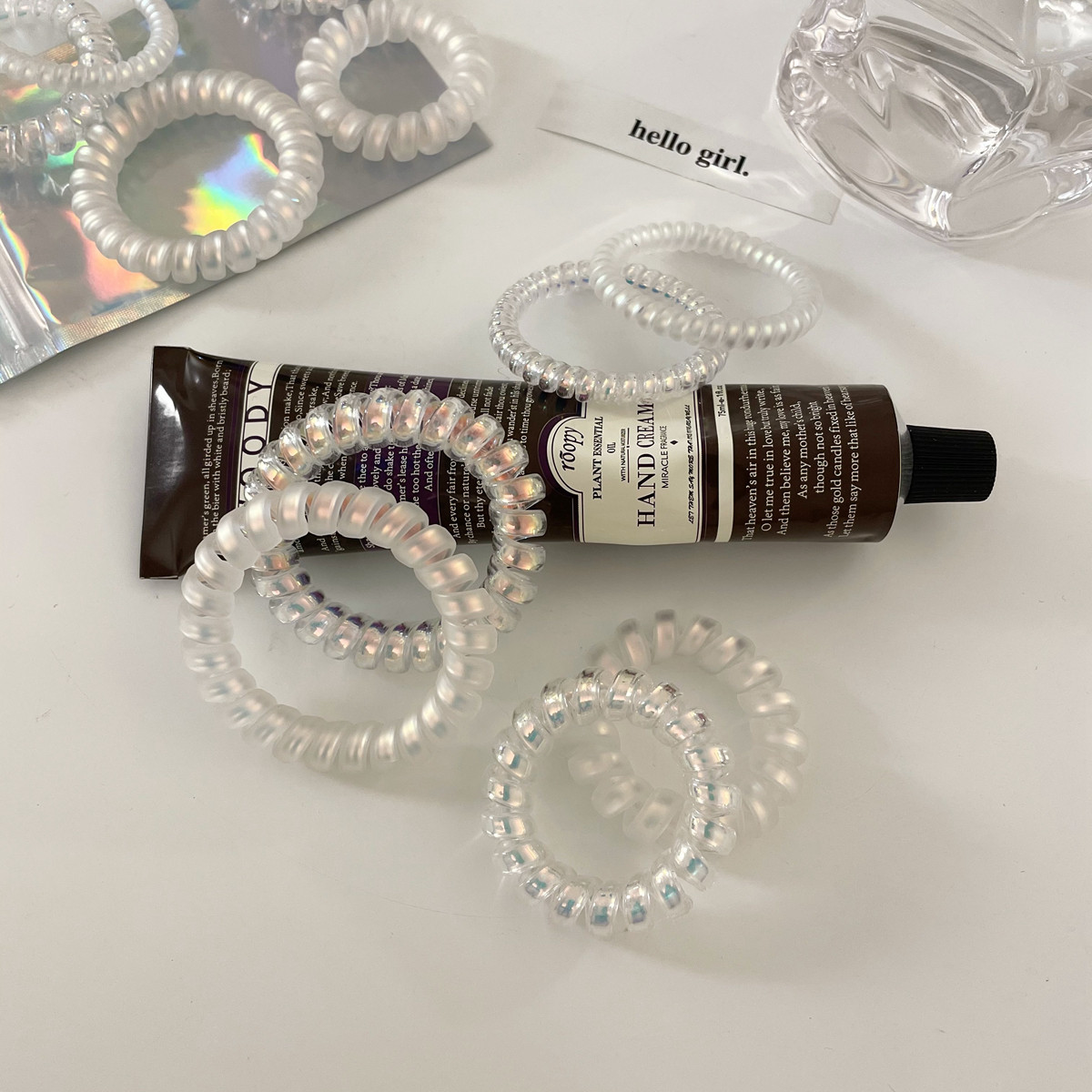 2条装 梦幻人鱼姬发绳基础百搭电话绳发圈头绳无痕不伤发皮筋发饰