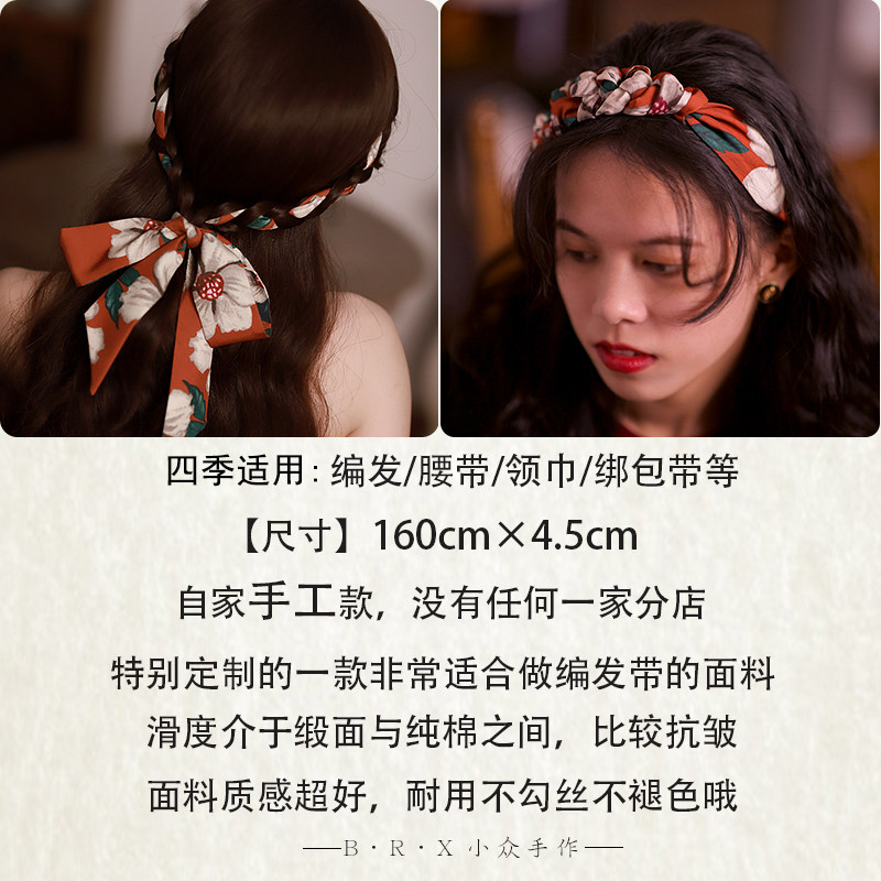 《山楂花迹》故宫红复古加长编发带绑辫子丝带发箍红色新年发饰品
