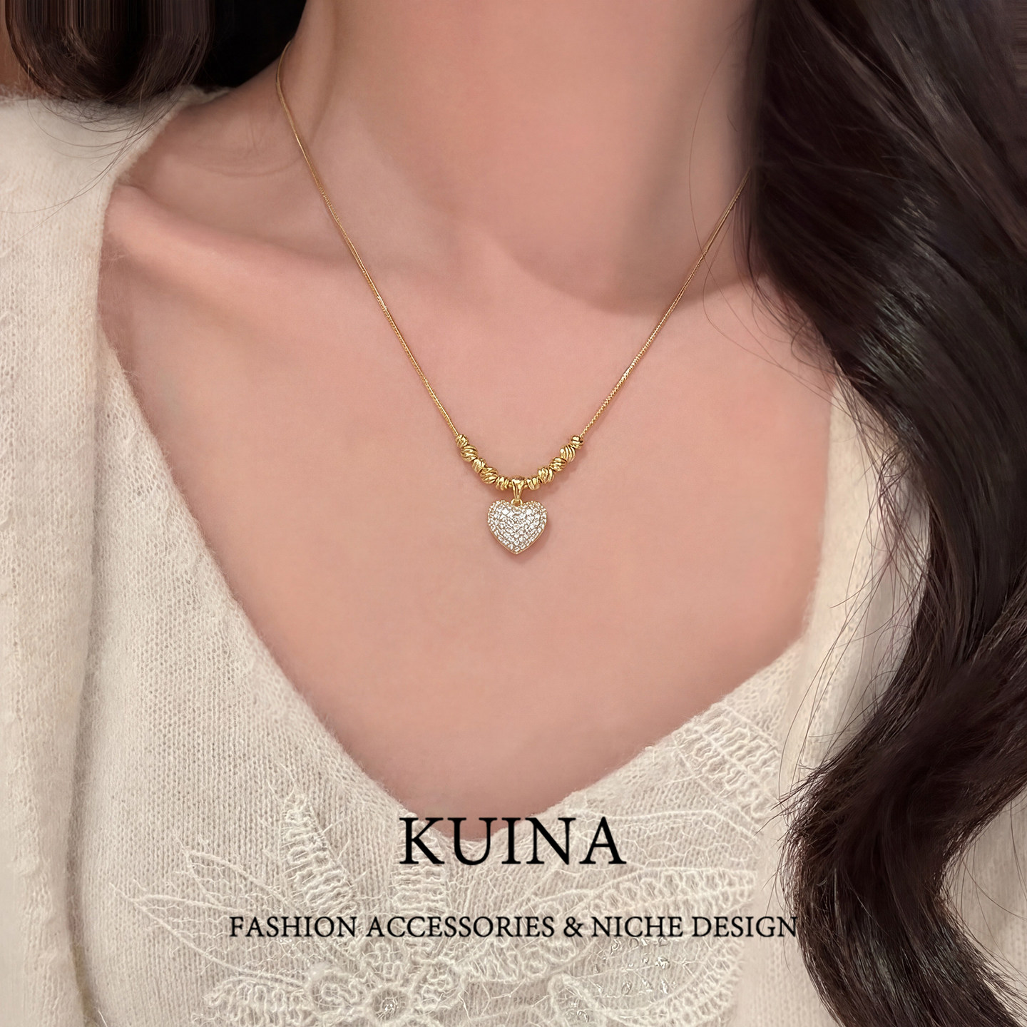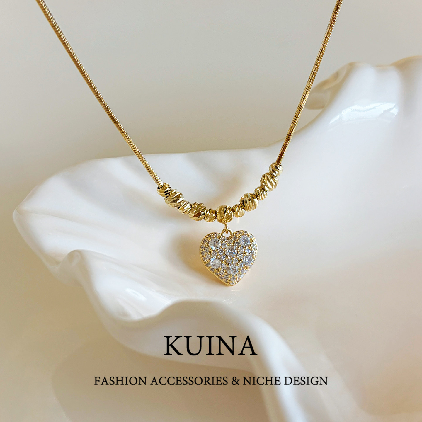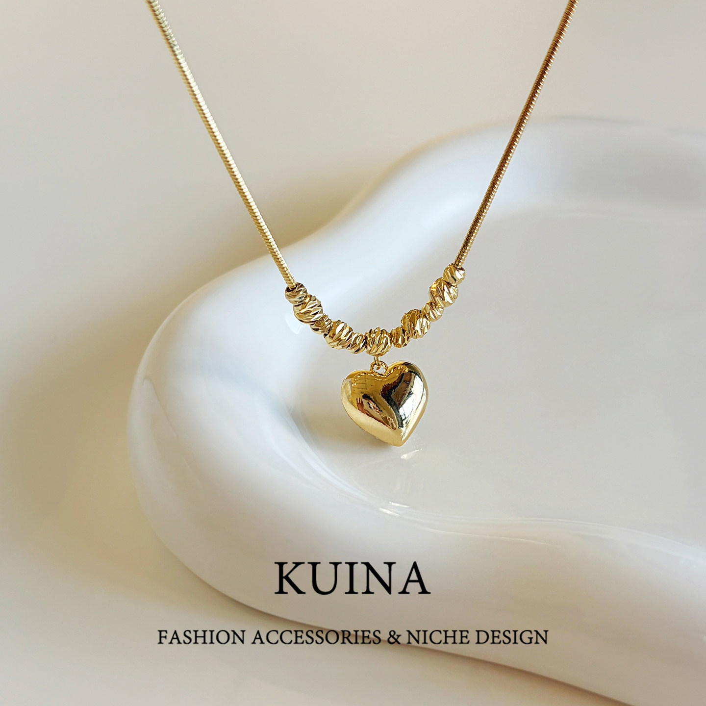 简约高级爱心吊坠项链小众串珠蛇骨链叠戴颈链锁骨链气质配饰新款