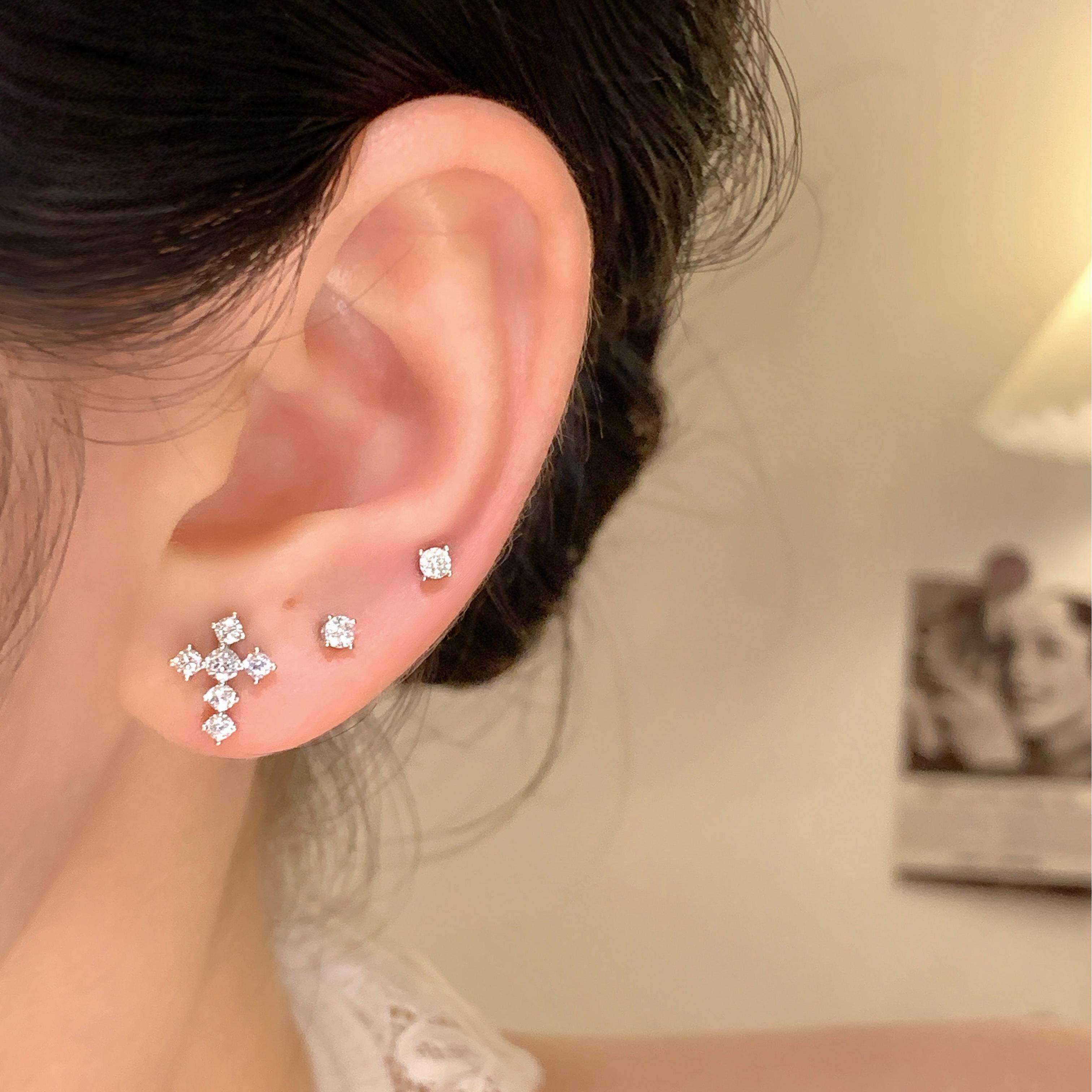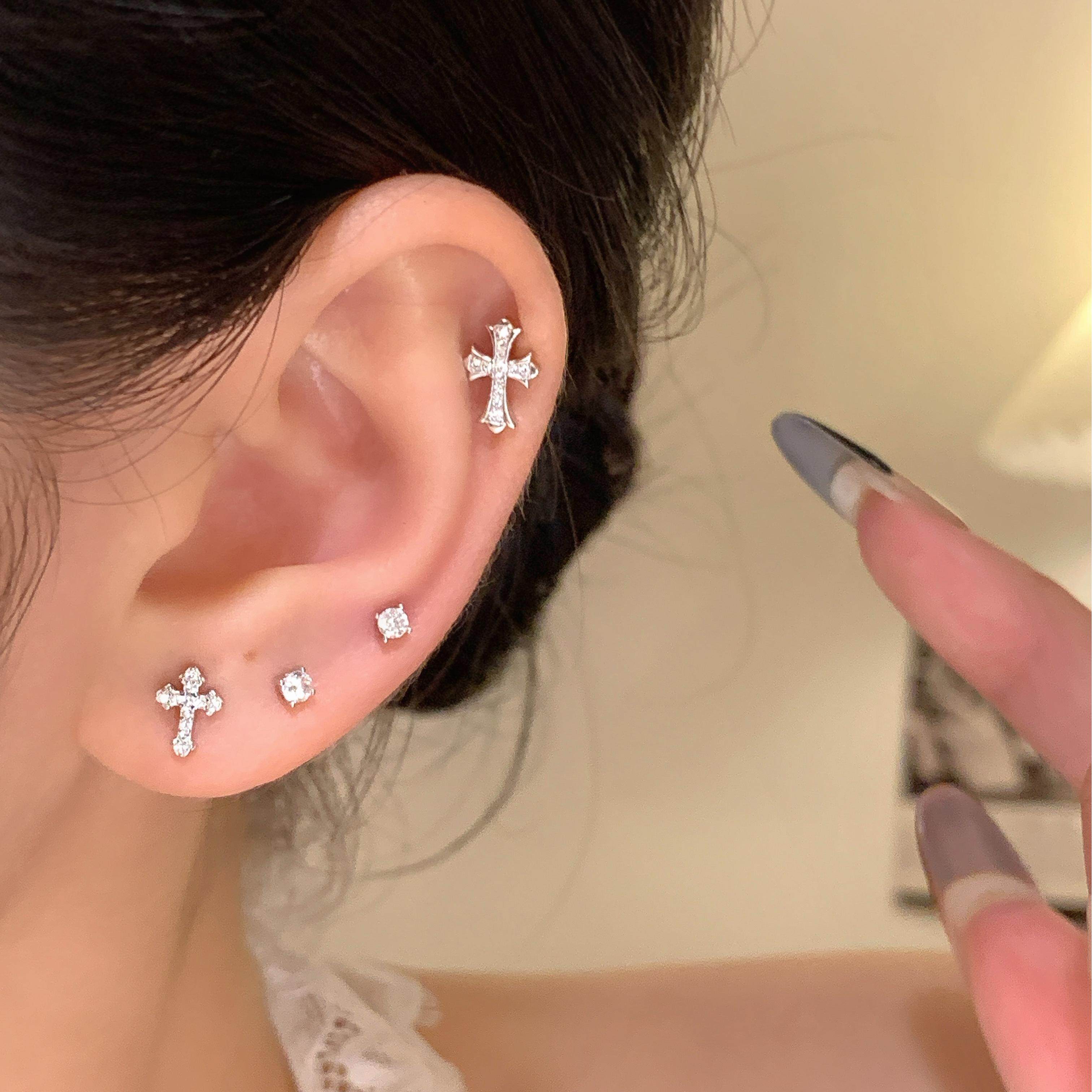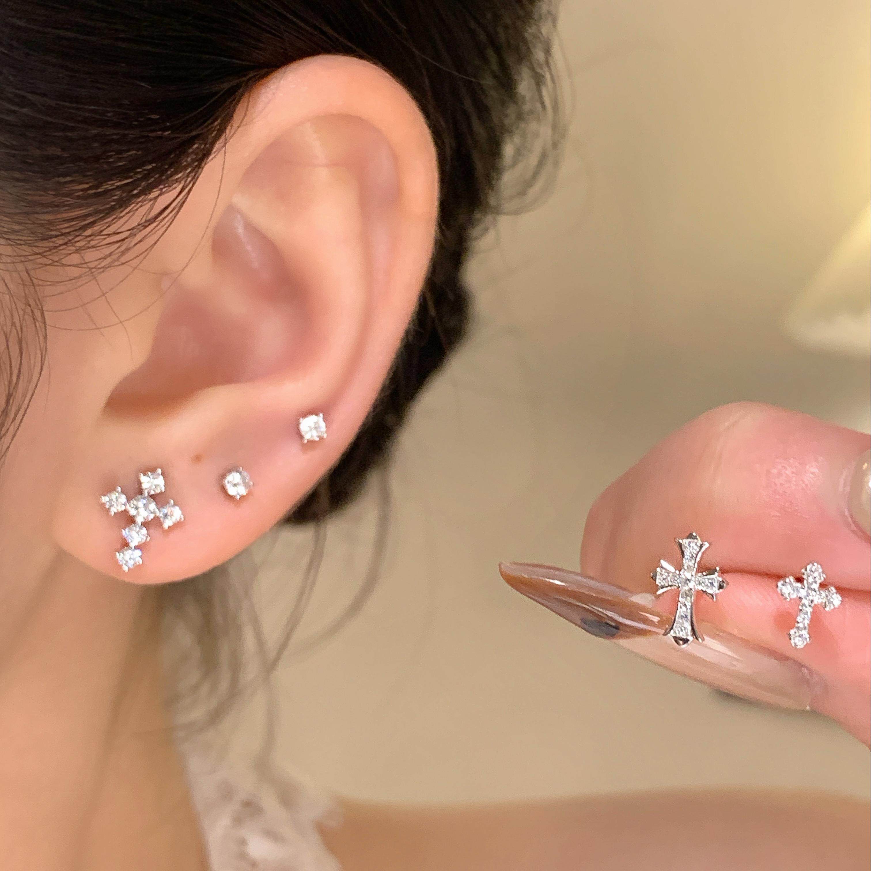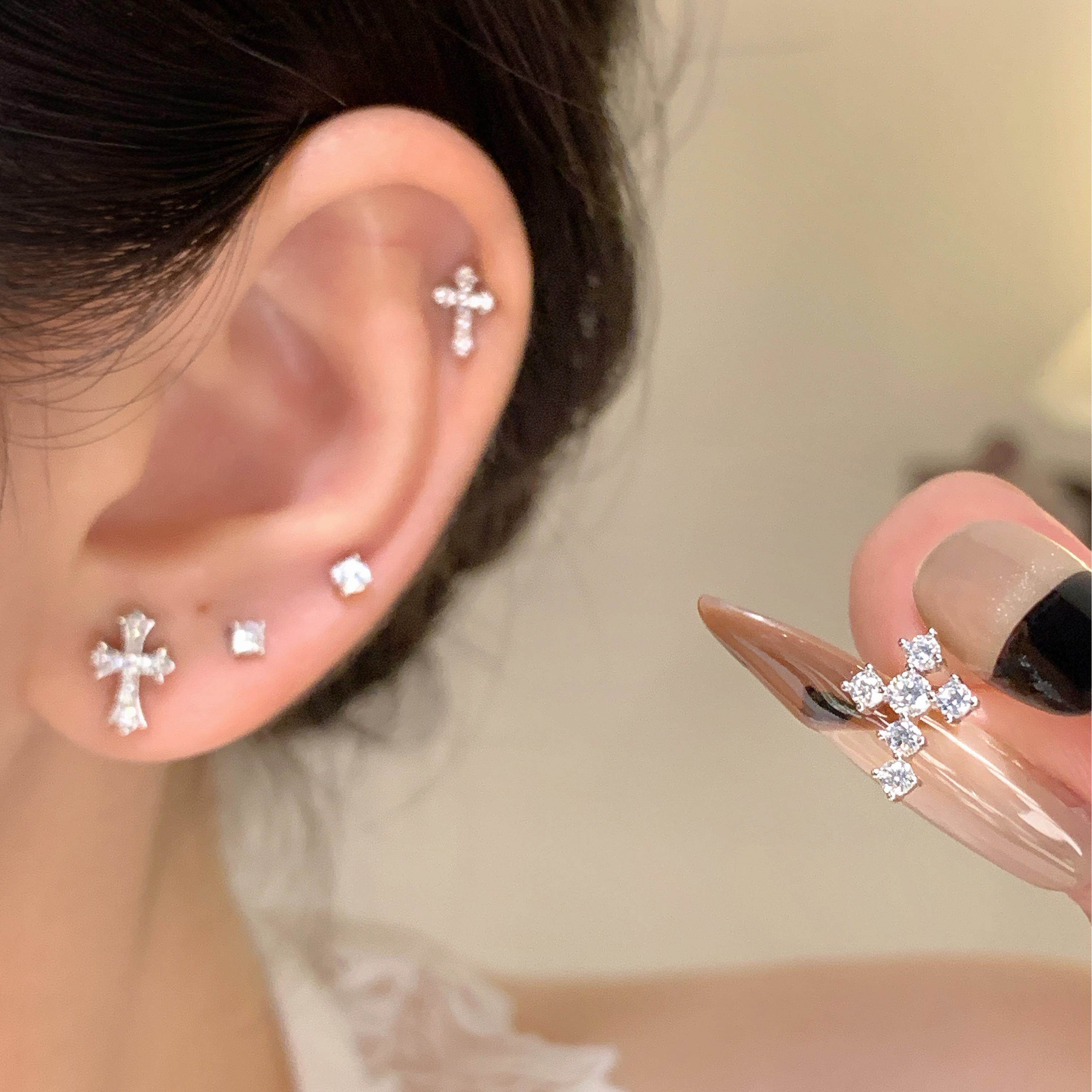 嘟嘟夫妇S999纯银十字架耳钉养耳洞小巧睡觉免摘超闪小众耳骨钉女