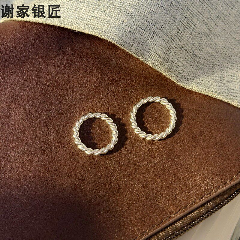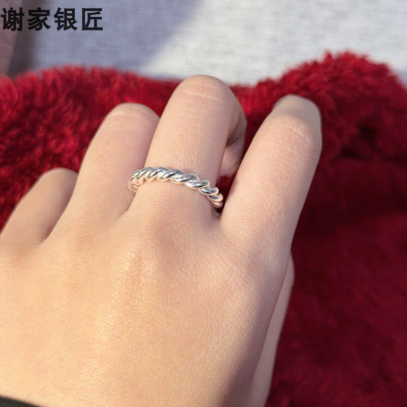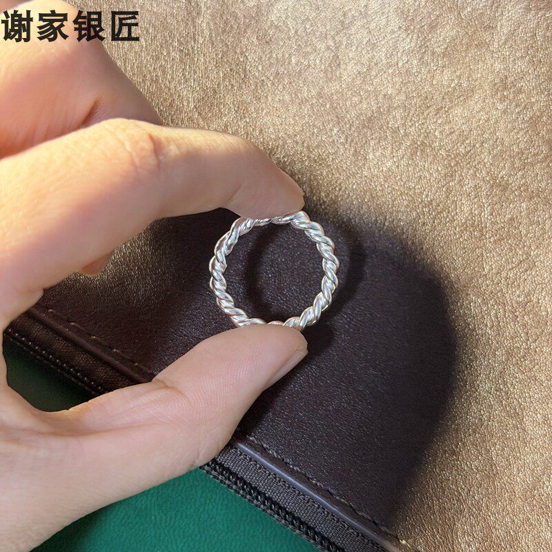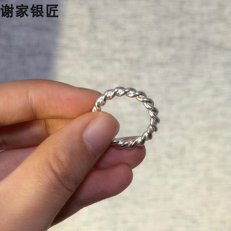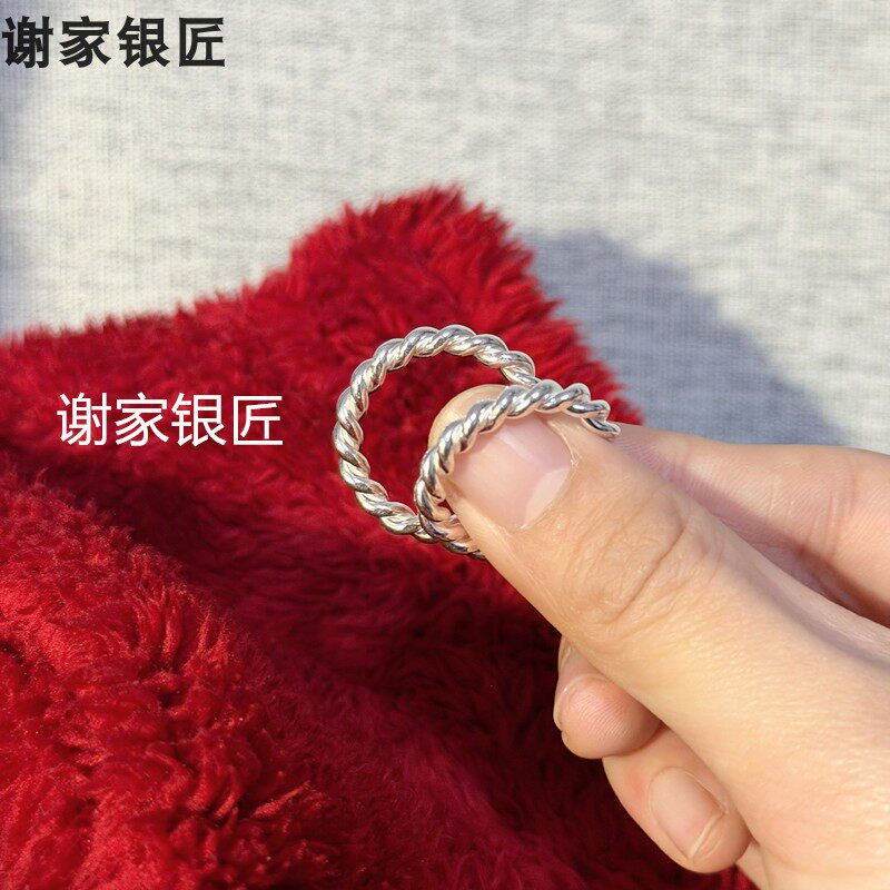谢家银匠足银加粗手工麻花编织戒指 999纯银戒圈男女银饰指环素银