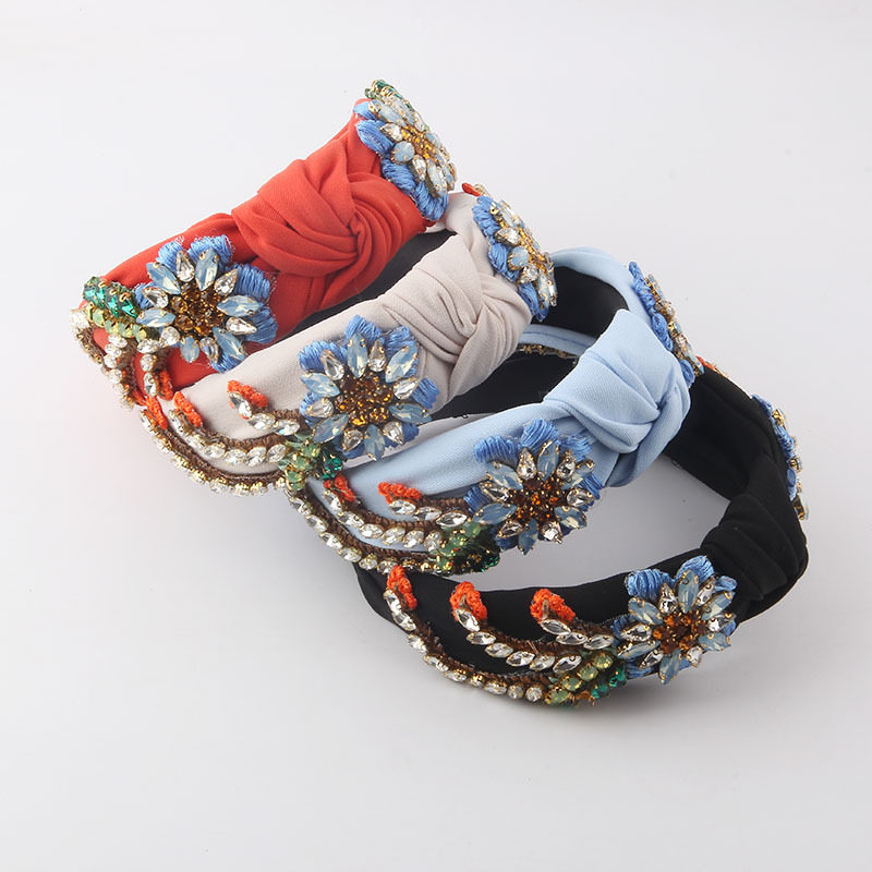新款欧美巴洛克水晶布艺发饰几何靓丽个性气质女士旅游礼物发箍女