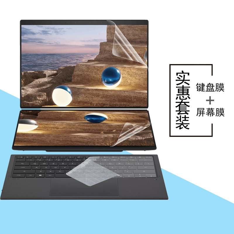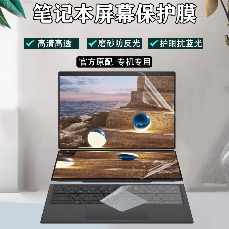 2026款华硕ASUS Zenbook DUO屏幕膜保护UX8407笔记本14英寸全屏覆盖保护膜UX8406凹凸键盘膜防水套隐私防窥膜