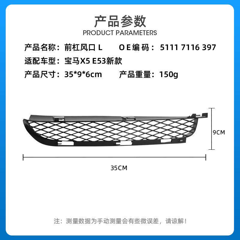 适用于03-06款宝马X5E53前杠风口通风网51117116397/51117116398